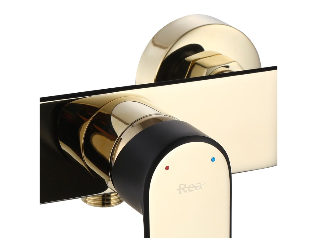 Predstavujeme Vám novú, mimoriadne designovú a veľmi modernú sprchovú batériu. Táto batéria sa dokonale hodí do Vašej kúpeľne, kde vyplní Váš priestor a pritom zachová krásny vzhľad a estetiku interiéru. Batéria je určená na montážnu stenu a vďaka špeciálnej fáze výroby je batéria veľmi odolná a ľahko sa čistí. Moderná sprchová batéria série Rea Bloom je batéria vyrobená z vysoko kvalitnej mosadze s úpravou v zlatom + čiernom matnom prevedení, ktoré bolo prevedené celkom trikrát. Montážny návodDodatočné parametre