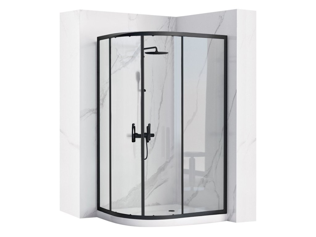 Sprchová kabína REA Look Black 80x100 + Sprchová vanička Look White