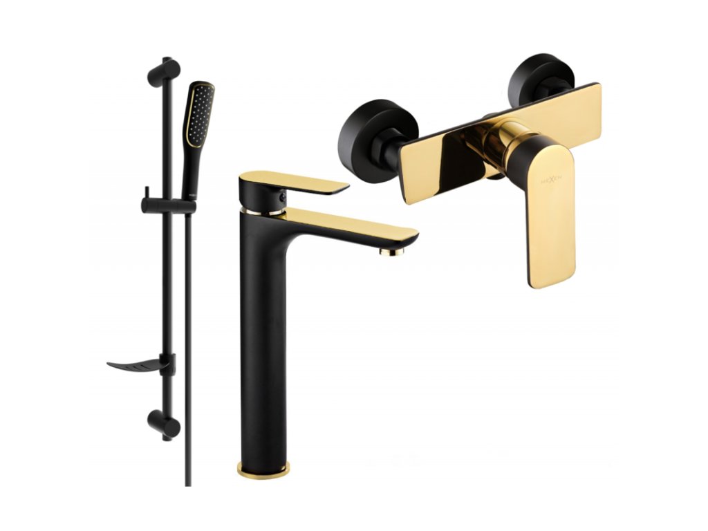 Sprchová súprava Mexen Alfa DF49, čierna/zlatá - 745714DF49-75