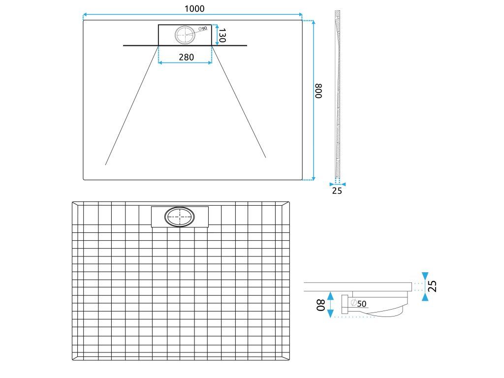 Sprchová vanička REA Bazalt long 80x100 - bílý