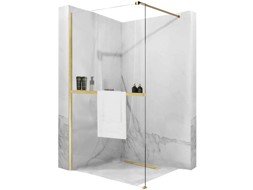 Sprchová zástena REA AERO Brush N 100 walk-in + polica a vešiak EVO - zlatá