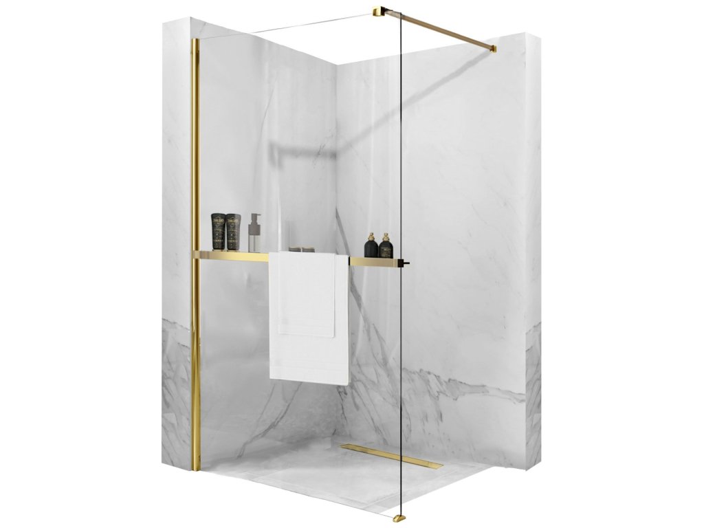 Sprchová zástena REA AERO N 120 walk-in + polica a vešiak EVO - zlatá