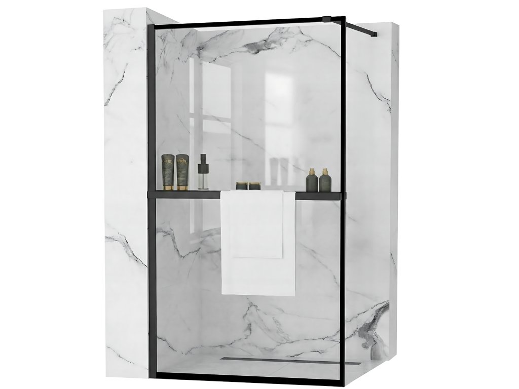 Moderný dizajn s jemným geometrickým nádychom určite osvieži každý interiér kúpeľne a navodí úžasnú náladu, či už je interiér zariadený v modernom, vintage alebo inom štýle. Čierne profily v kombinácii s čírym sklom nie sú ničím iným ako dokonalou rovnováhou dizajnu celého výrobku. Čierne línie prebiehajúce pozdĺž steny, ktoré vytvárajú dokonale vyvážený dizajn, sú ďalšou kvalitou, ktorá poteší oko aj tých najvyberanejších vkusov. Nastaviteľné hliníkové rameno svojím minimalizmom dotvára celú kompozíciu. Sprchová stena Bler nie je len nevyhnutnou súčasťou každodennej hygieny, ale aj časom na chvíľu relaxu, ktorú si zaslúžite po dlhom dni. Dali sme si záležať na tom, aby bol výrobok okrem svojej špičkovej funkčnosti aj jedinečným prvkom vo vašej kúpeľni a prinášal potešenie nielen vášmu telu, ale aj očiam. Dovoľte si urobiť z vašej kúpeľne viac než len miesto na osvieženie. Pre maximálny komfort je naša stena potiahnutá inovatívnym nano-povlakom Easy Clean, technológiou, ktorá vám umožní udržiavať stenu v dokonalej čistote s minimálnou námahou. Udržujte dokonalú čistotu bez použitia silných čistiacich prostriedkov. Okrem toho priložená podlahová lišta chráni sklo sprchového kúta pred poškodením. Čierna farba sa nanáša počas výrobného procesu a potom sa spolu s krídlom dvakrát temperuje pri teplote 600-800 °C. To zaručuje 100 % trvanlivosť a odolnosť voči poškriabaniu a mechanickému poškodeniu. Je to jediná metóda, ktorá zaručuje najvyššiu kvalitu a trvanlivosť. Praktická polica s držiakom na uteráky Evo Black Mat Súčasťou sprchovej steny Bler je praktická polička s držiakom na uteráky Evo. Je vyrobená z vysokokvalitného hliníka potiahnutého čiernou matnou farbou, ktorá je odolná voči poškodeniu a poškriabaniu. Praktická polica vám umožní udržiavať v kúpeľni poriadok a jej moderný dizajn dodá vašej kúpeľni ďalší dekoratívny prvok. Poličku je potrebné pred inštaláciou orezať na šírku sprchového skla, maximálna dĺžka poličky je 120 cm. Inštalácia je veľmi intuitívna, stačí utiahnuť skrutky, ktoré držia poličku v požadovanej výške. Vhodné sprchové súpravy, odtoky a ďalšie kúpeľňové príslušenstvo nájdete v našom obchode. Srdečne vás pozývame! Návod na použitie CAD Príručka k regálu evoDodatočné parametre