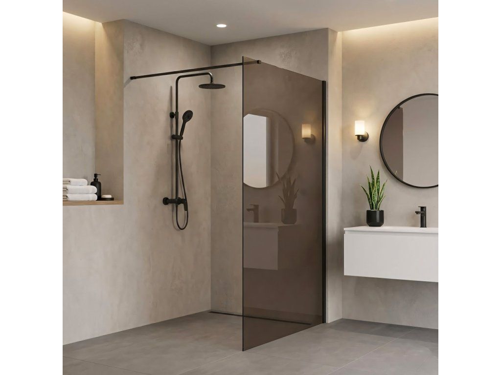 Chcete dodať svojej kúpeľni výnimočnú, loftovú atmosféru? Vyberte si sprchovú stenu walk-in Rea Flexi so sklom v odtieni Smoked Brown. Ide o výraznú kombináciu profilov v farbe Čierna Mat s tónovaným sklom, ktoré poskytuje súkromie a elegantný vzhľad. Konštrukcia z bezpečného 8 mm tvrdeného skla zaručuje odolnosť a stabilitu.Tvrdené sklo 8 mm – hrubé, bezpečné sklo s hnedým zafarbením, ktoré vnáša do interiéru teplo a zvyšuje mieru súkromia.Easy Clean povrch – neviditeľná hydrofóbna vrstva, ktorá uľahčuje odtekanie vody a chráni pred usadzovaním mydla a vodného kameňa.Hliníkový profil Čierna Mat – kontrastný, matný nástenný profil, ideálny do industriálnych interiérov.Vzpiera 120 cm s možnosťou skrátenia – horné stabilizačné rameno možno skrátiť a prispôsobiť tak hĺbku sprchového kúta individuálnym požiadavkám.Univerzálna montáž – stenu je možné nainštalovať z pravej aj ľavej strany, na sprchovú vaničku alebo priamo na podlahu s líniovým odtokom.Walk-in konštrukcia – moderný, otvorený vstup bez pohyblivých prvkov, ktorý zaručuje bezporuchovú prevádzku a komfort pri používaní.Sprchová stena Rea Flexi je určená pre tých, ktorí hľadajú netradičné riešenia. Tónované sklo v kombinácii s čiernymi detailmi vytvára luxusnú sprchovaciu zónu. Vďaka povrchu Easy Clean a kvalitným materiálom spája tento produkt vysokú estetiku s jednoduchou údržbou.Dodatočné parametre