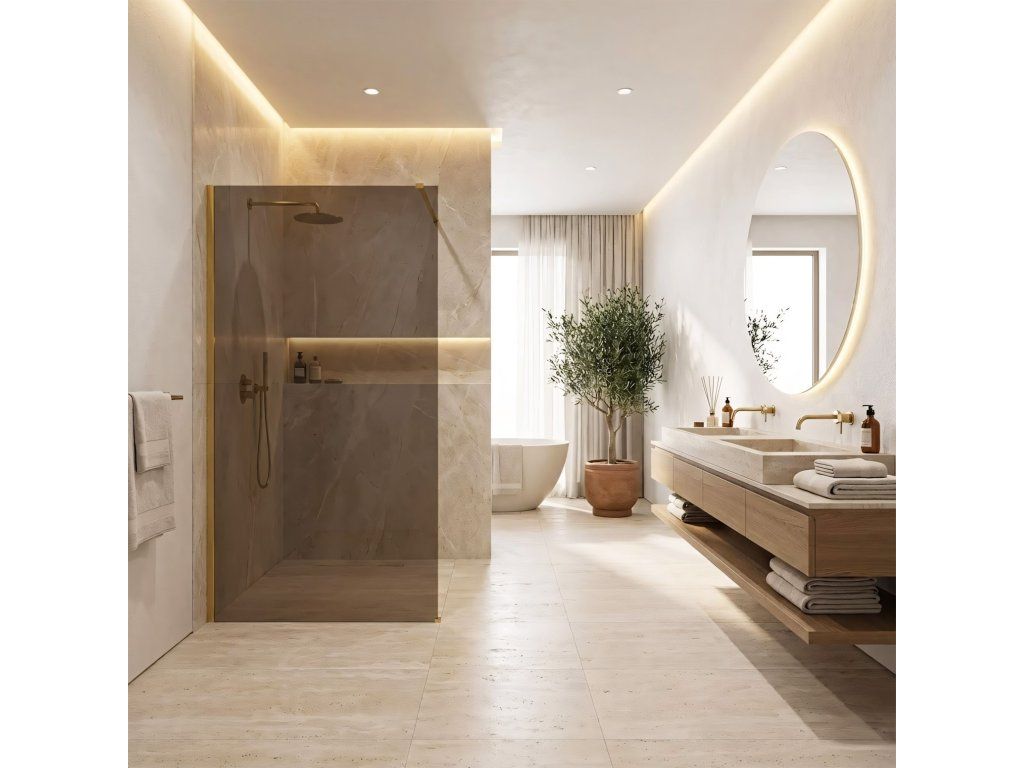 Vytvorte vo svojej kúpeľni atmosféru teplého luxusu vďaka walk-in sprchovej stene Rea Flexi v jedinečnej konfigurácii: sklo v odtieni Dymová Hnedá a profil v farbe Lesklé Zlato. Harmonické spojenie tmavšieho hnedého skla a žiarivých detailov vytvára mimoriadne elegantný a útulný priestor. Konštrukcia z 8 mm kaleného skla zabezpečuje stabilitu a bezpečné používanie.8 mm kalené sklo (Dymová Hnedá) – odolné sklo s teplým hnedým tónom, ktoré zútulní interiér, poskytne diskrétnosť a skvelo ladí so zlatými doplnkami.Hliníkový profil Lesklé Zlato – efektná lesklá úprava profilu a ramena, ktorá krásne odráža svetlo.Povrch Easy Clean – neviditeľná hydrofóbna bariéra uľahčujúca stekanie vody a ochranu pred usadeninami.Stabilizačné rameno 120 cm, skrátiteľné – možnosť úpravy na mieru pre ideálne prispôsobenie.Univerzálna montáž – montáž na pravú alebo ľavú stranu, na vaničku alebo priamo na podlahu.Walk-In konštrukcia – otvorený vstup bez dverí, ktorý zaručuje voľnosť pohybu.Sprchová stena Rea Flexi je voľbou pre milovníkov nadčasovej klasiky v modernom prevedení. Kombinácia lesklého zlata a hnedej vytvára rafinovanú kompozíciu, ktorá interiér príjemne zohreje. Vďaka kvalitným materiálom a úprave Easy Clean je produkt krásny aj praktický.Dodatočné parametre