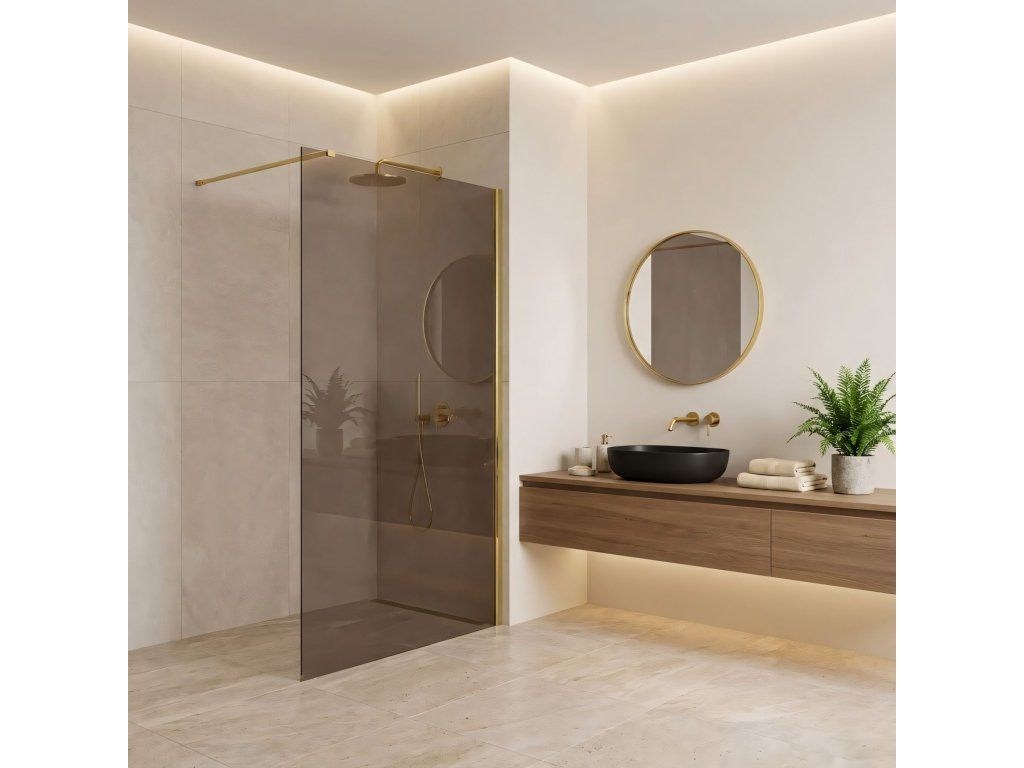 Vytvorte vo svojej kúpeľni atmosféru teplého luxusu vďaka walk-in sprchovej stene Rea Flexi v jedinečnej konfigurácii: sklo v odtieni Dymová Hnedá a profil v farbe Lesklé Zlato. Harmonické spojenie tmavšieho hnedého skla a žiarivých detailov vytvára mimoriadne elegantný a útulný priestor. Konštrukcia z 8 mm kaleného skla zabezpečuje stabilitu a bezpečné používanie.8 mm kalené sklo (Dymová Hnedá) – odolné sklo s teplým hnedým tónom, ktoré zútulní interiér, poskytne diskrétnosť a skvelo ladí so zlatými doplnkami.Hliníkový profil Lesklé Zlato – efektná lesklá úprava profilu a ramena, ktorá krásne odráža svetlo.Povrch Easy Clean – neviditeľná hydrofóbna bariéra uľahčujúca stekanie vody a ochranu pred usadeninami.Stabilizačné rameno 120 cm, skrátiteľné – možnosť úpravy na mieru pre ideálne prispôsobenie.Univerzálna montáž – montáž na pravú alebo ľavú stranu, na vaničku alebo priamo na podlahu.Walk-In konštrukcia – otvorený vstup bez dverí, ktorý zaručuje voľnosť pohybu.Sprchová stena Rea Flexi je voľbou pre milovníkov nadčasovej klasiky v modernom prevedení. Kombinácia lesklého zlata a hnedej vytvára rafinovanú kompozíciu, ktorá interiér príjemne zohreje. Vďaka kvalitným materiálom a úprave Easy Clean je produkt krásny aj praktický.Dodatočné parametre