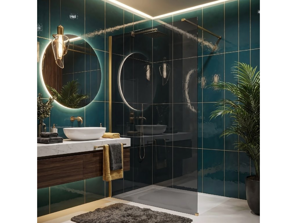 Vytvorte si vo svojej kúpeľni relaxačnú zónu s jedinečným a elegantným charakterom. Vyberte si sprchovú stenu walk-in Rea Flexi v efektnom vyhotovení: sklo v sivom odtieni a profily vo farbe Kartáčované zlato. Toto spojenie modernej, stmavenej tabule a teplého povrchu profilov dodáva interiéru triedu. Konštrukcia z bezpečného 8 mm tvrdeného skla zaručuje trvácnosť a bezpečnosť.Tvrdené sklo 8 mm (Sivé) – pevná tabuľa s elegantným sivým zafarbením, ktorá vytvára modernú atmosféru, poskytuje diskrétnosť a pekne kontrastuje so zlatom.Hliníkový profil Kartáčované zlato – štýlové vyhotovenie nástenného profilu, ktoré tvorí výrazný dekoratívny akcent.Easy Clean povlak – neviditeľná hydrofóbna vrstva uľahčujúca odtekanie vody a chrániaca sklo pred usadzovaním vodného kameňa.Vzpiera 120 cm s možnosťou skrátenia – horné stabilizačné rameno v zlatej farbe je možné skrátiť, aby sa hĺbka kabíny prispôsobila rozmerom kúpeľne.Univerzálna montáž – stenu možno nainštalovať na pravú aj ľavú stranu, na sprchovú vaničku alebo priamo na podlahu s líniovým odtokom.Walk-In konštrukcia – minimalistický, otvorený vstup bez dverí, ktorý zaručuje pohodlné používanie a moderný vzhľad.Sprchová stena Rea Flexi je určená pre tých, ktorí hľadajú neobyčajné a vkusné kombinácie. Kartáčované zlaté prvky v spojení so sivou sklenenou tabuľou vytvárajú mimoriadne efektnú kompozíciu. Vďaka povlaku Easy Clean a kvalitným materiálom výrobok spája estetiku, funkčnosť a jednoduchú údržbu.Dodatočné parametre