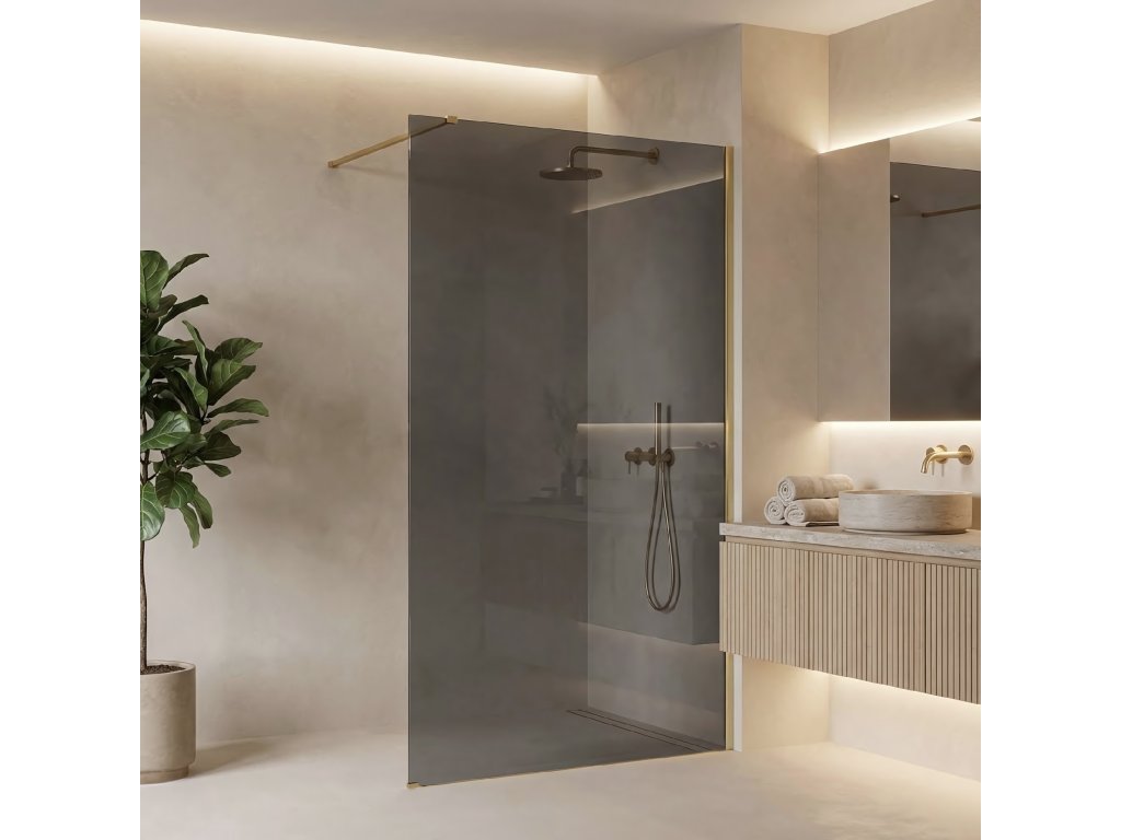 Vytvorte si vo svojej kúpeľni relaxačnú zónu s jedinečným a elegantným charakterom. Vyberte si sprchovú stenu walk-in Rea Flexi v efektnom vyhotovení: sklo v sivom odtieni a profily vo farbe Kartáčované zlato. Toto spojenie modernej, stmavenej tabule a teplého povrchu profilov dodáva interiéru triedu. Konštrukcia z bezpečného 8 mm tvrdeného skla zaručuje trvácnosť a bezpečnosť.Tvrdené sklo 8 mm (Sivé) – pevná tabuľa s elegantným sivým zafarbením, ktorá vytvára modernú atmosféru, poskytuje diskrétnosť a pekne kontrastuje so zlatom.Hliníkový profil Kartáčované zlato – štýlové vyhotovenie nástenného profilu, ktoré tvorí výrazný dekoratívny akcent.Easy Clean povlak – neviditeľná hydrofóbna vrstva uľahčujúca odtekanie vody a chrániaca sklo pred usadzovaním vodného kameňa.Vzpiera 120 cm s možnosťou skrátenia – horné stabilizačné rameno v zlatej farbe je možné skrátiť, aby sa hĺbka kabíny prispôsobila rozmerom kúpeľne.Univerzálna montáž – stenu možno nainštalovať na pravú aj ľavú stranu, na sprchovú vaničku alebo priamo na podlahu s líniovým odtokom.Walk-In konštrukcia – minimalistický, otvorený vstup bez dverí, ktorý zaručuje pohodlné používanie a moderný vzhľad.Sprchová stena Rea Flexi je určená pre tých, ktorí hľadajú neobyčajné a vkusné kombinácie. Kartáčované zlaté prvky v spojení so sivou sklenenou tabuľou vytvárajú mimoriadne efektnú kompozíciu. Vďaka povlaku Easy Clean a kvalitným materiálom výrobok spája estetiku, funkčnosť a jednoduchú údržbu.Dodatočné parametre