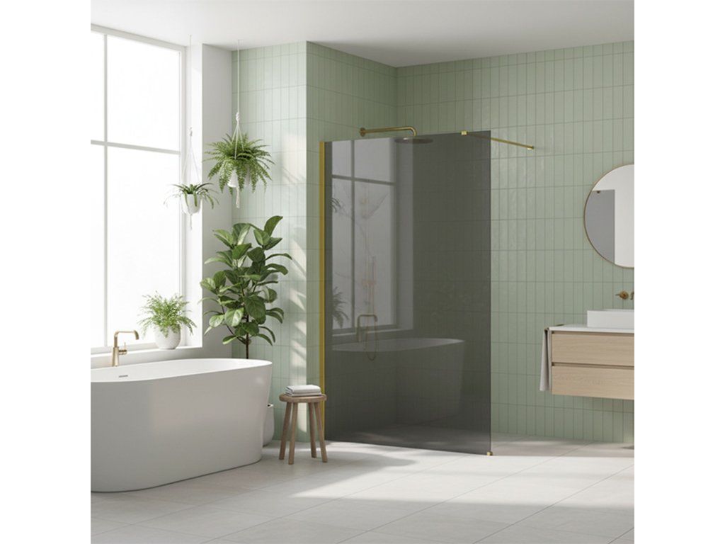 Zvýraznite jedinečný charakter svojej kúpeľne voľbou walk-in sprchovej steny Rea Flexi so sivým sklom a profilmi vo farbe zlatý lesk. Toto vycibrené spojenie tmavšej grafitovej tabule s lesklou úpravou dodáva interiéru modernú eleganciu. Konštrukcia zo solídneho 8 mm kaleného skla zaručuje bezpečnosť a dlhú životnosť.8 mm kalené sklo (sivé) – odolná tabuľa s hlbokým sivým zafarbením, ktorá vytvára intímnejšiu atmosféru, poskytuje súkromie a je moderným pozadím pre lesklé detaily.Hliníkový profil zlatý lesk – efektné zrkadlové vyhotovenie nástenného profilu, ktoré krásne odráža svetlo a kontrastuje s tmavším sklom.Povrchová úprava Easy Clean – moderná hydrofóbna vrstva, vďaka ktorej voda rýchlejšie steká a obmedzuje usadzovanie mydla a vodného kameňa.Stabilizačné rameno 120 cm s reguláciou – podperná tyč v zlatom lesku, s možnosťou skrátenia na mieru pre presné nastavenie hĺbky sprchovej zóny.Univerzálna montáž – voľnosť pri inštalácii: montáž vpravo alebo vľavo, na vaničku alebo priamo na dlažbu s odtokom.Walk-In konštrukcia – minimalistický otvorený vstup bez dverí a prahov, pre maximálne pohodlie a ľahký prístup.Sprchová stena Rea Flexi Gold Gloss Grey je voľbou pre tých, ktorí hľadajú netradičný dizajn. Kombinácia sivého skla a lesklého zlata vytvára luxusný a výrazný efekt. Vďaka povrchovej úprave Easy Clean a kvalitným materiálom spája dekoratívny vzhľad s funkčnosťou.Buďte prvý, kto napíše príspevok k tejto položke.