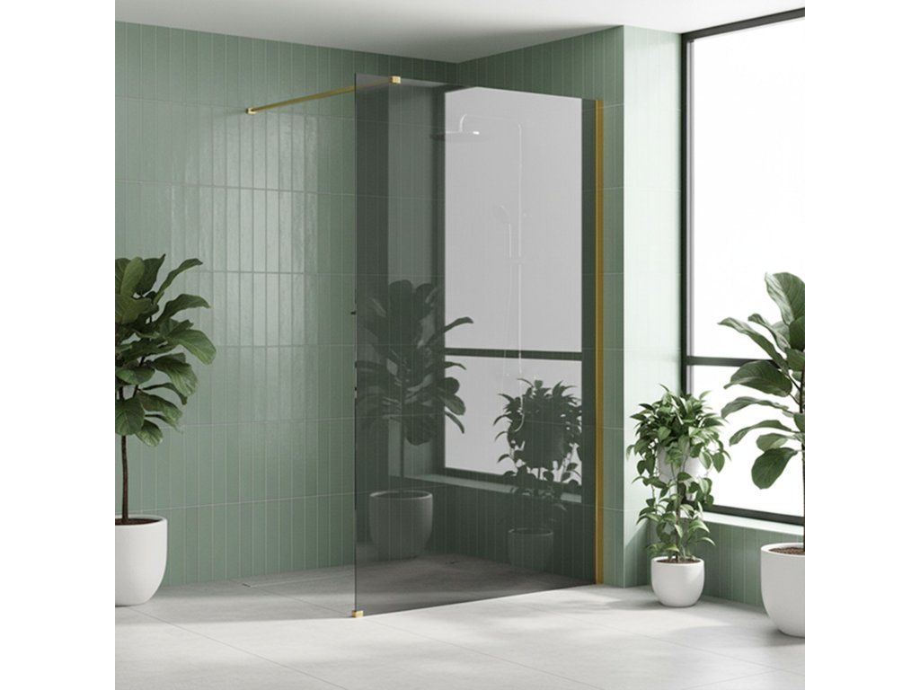 Zvýraznite jedinečný charakter svojej kúpeľne voľbou walk-in sprchovej steny Rea Flexi so sivým sklom a profilmi vo farbe zlatý lesk. Toto vycibrené spojenie tmavšej grafitovej tabule s lesklou úpravou dodáva interiéru modernú eleganciu. Konštrukcia zo solídneho 8 mm kaleného skla zaručuje bezpečnosť a dlhú životnosť.8 mm kalené sklo (sivé) – odolná tabuľa s hlbokým sivým zafarbením, ktorá vytvára intímnejšiu atmosféru, poskytuje súkromie a je moderným pozadím pre lesklé detaily.Hliníkový profil zlatý lesk – efektné zrkadlové vyhotovenie nástenného profilu, ktoré krásne odráža svetlo a kontrastuje s tmavším sklom.Povrchová úprava Easy Clean – moderná hydrofóbna vrstva, vďaka ktorej voda rýchlejšie steká a obmedzuje usadzovanie mydla a vodného kameňa.Stabilizačné rameno 120 cm s reguláciou – podperná tyč v zlatom lesku, s možnosťou skrátenia na mieru pre presné nastavenie hĺbky sprchovej zóny.Univerzálna montáž – voľnosť pri inštalácii: montáž vpravo alebo vľavo, na vaničku alebo priamo na dlažbu s odtokom.Walk-In konštrukcia – minimalistický otvorený vstup bez dverí a prahov, pre maximálne pohodlie a ľahký prístup.Sprchová stena Rea Flexi Gold Gloss Grey je voľbou pre tých, ktorí hľadajú netradičný dizajn. Kombinácia sivého skla a lesklého zlata vytvára luxusný a výrazný efekt. Vďaka povrchovej úprave Easy Clean a kvalitným materiálom spája dekoratívny vzhľad s funkčnosťou.Buďte prvý, kto napíše príspevok k tejto položke.
