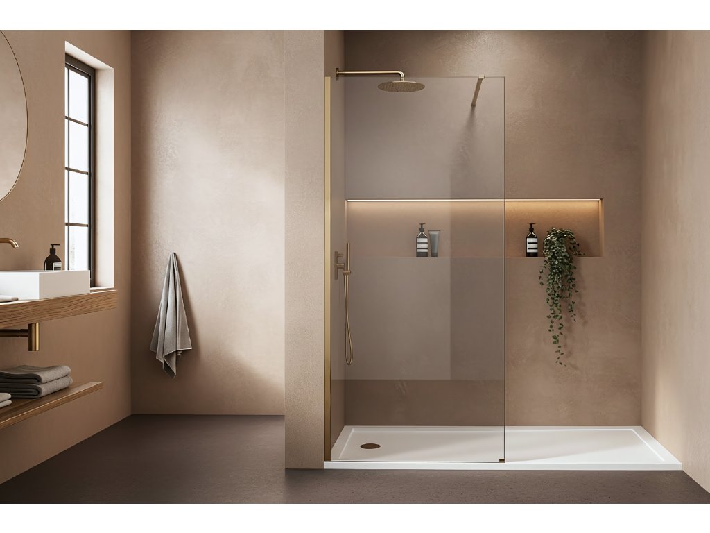 Sprchová zástena Rea Flexi Transparent / Brush Gold 90