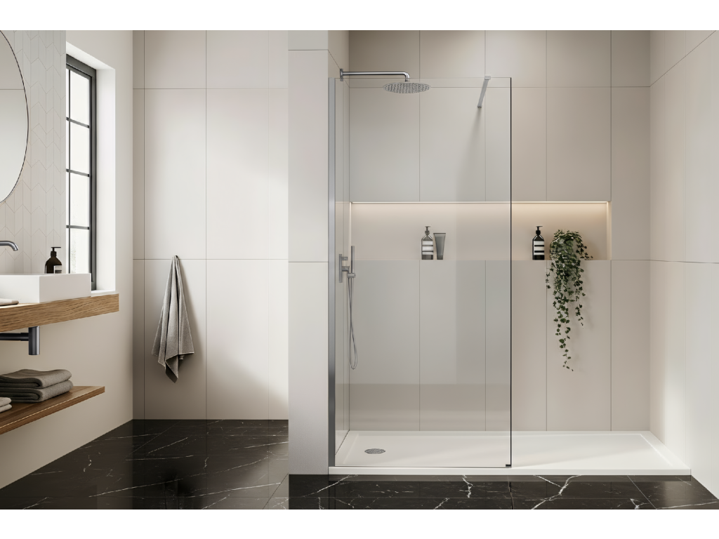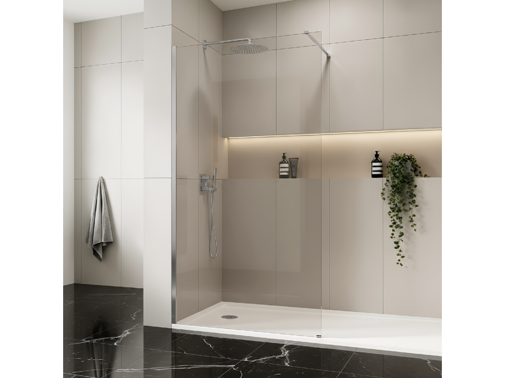 Vytvorte modernú a priestrannú sprchovú zónu s walk-in sprchovou stenou Rea Flexi. Tento model s tabuľou z transparentného skla a profilom v farbe chróm spája minimalistický dizajn s maximálnou funkčnosťou a opticky zväčšuje priestor. Vyrobená z hrubého kaleného skla 8 mm a dokončená elegantným hliníkovým profilom, zaručuje pevnosť a bezchybný vzhľad.Kalené sklo 8 mm – pevné a bezpečné sklo zabezpečuje stabilitu konštrukcie a bezpečnosť pri používaní.Easy Clean povrch – hydrofóbna úprava na jednej strane skla, ktorá uľahčuje čistenie a znižuje usadzovanie vodného kameňa.Hliníkový chrómový profil – elegantný nástenný profil s lesklým chrómovaným povrchom stabilizuje konštrukciu.Stabilizátor 120 cm s možnosťou skrátenia – horné stabilizačné rameno medzi stenou a panelom, ľahko prispôsobiteľné na požadovanú dĺžku.Univerzálna montáž – montáž vpravo alebo vľavo, na vaničku alebo priamo na dlažbu.Walk-In konštrukcia – otvorený dizajn pre jednoduchý prístup a moderný vzhľad kúpeľne.Walk-in sprchová stena Rea Flexi je skvelou voľbou pre tých, ktorí oceňujú jednoduchosť a komfort. Vďaka kvalitným materiálom, ako je 8 mm kalené sklo a povrch Easy Clean, ide o praktické a estetické riešenie. Séria Flexi je tiež k dispozícii s ďalšími farbami profilov a sklom v hnedom alebo sivom prevedení.Dodatočné parametre