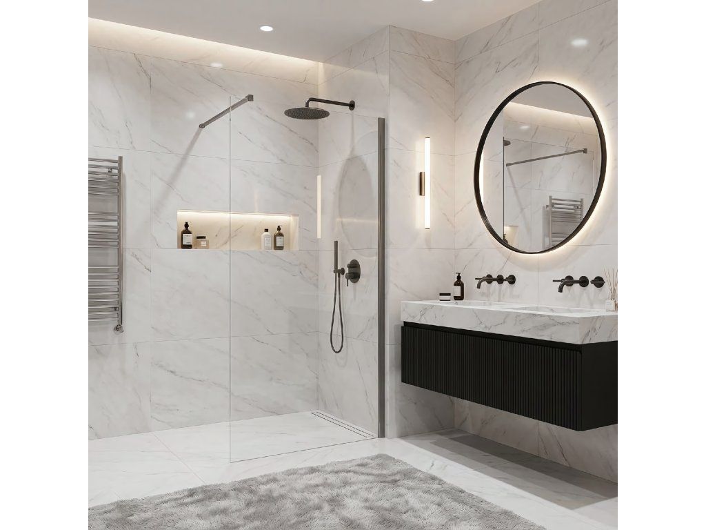 Objavte nový rozmer elegancie vo svojej kúpeľni so sprchovou stenou walk-in Rea Flexi vo verzii Titanium. Tento model spája krištáľovo čistú tabuľu transparentného skla s jedinečným profilom v odtieni Kartáčovaný Titán. Je to riešenie pre tých, ktorí hľadajú moderný a zároveň jemný štýl, ktorý opticky zväčšuje priestor.8 mm kalené sklo – hrubá priehľadná tabuľa zabezpečuje maximálnu stabilitu a bezpečnosť a zvýrazňuje priestor sprchového kúta.Hliníkový profil v kartáčovanom titáne – jedinečná titánová povrchová úprava ako moderná alternatíva ku klasickému chrómu.Povrch Easy Clean – hydrofóbna ochranná vrstva uľahčuje stekanie vody a bráni tvorbe vodného kameňa.Podporné rameno 120 cm s možnosťou skrátenia – pevné stabilizačné rameno v odtieni profilu, ktoré možno upraviť podľa potreby.Univerzálna montáž – montáž vpravo aj vľavo, na vaničku alebo priamo na podlahu s lineárnym žľabom.Walk-In konštrukcia – minimalistický dizajn bez pohyblivých prvkov, ktorý zaručuje pohodlie a dlhú životnosť.Sprchová stena Rea Flexi predstavuje dokonalú rovnováhu medzi funkčnosťou a moderným štýlom. Titánové vyhotovenie v kombinácii s transparentným sklom vytvára svetlý a priestranný sprchový priestor. Vďaka kvalitným materiálom a povrchu Easy Clean ponúka estetiku aj ľahkú každodennú údržbu.Dodatočné parametre