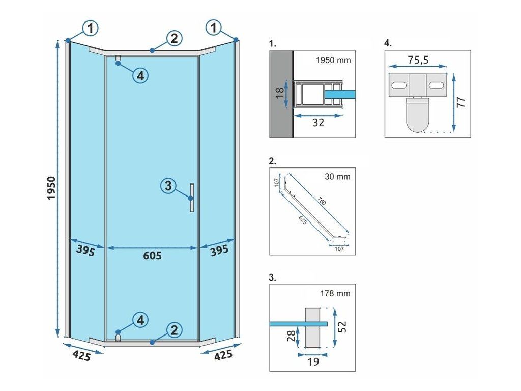 | Veľkosť (dvere x stena): | 90 x 90 |