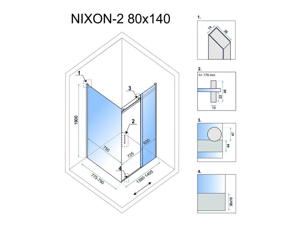 Predstavujeme vám krásny a extrémne funkčný rohový sprchovací kút Nixon. Ide o výrobok, ktorý dokonale vyplní priestor vašej kúpeľne pri zachovaní dokonalého vzhľadu a estetiky interiéru. Sprchový kút Nixon je vyrobený z vysoko kvalitného tvrdeného bezpečnostného skla s povrchovou úpravou Nano Easy Clean. Náš výrobok je vďaka povrchovým prvkom v chrómovej farbe mimoriadne elegantný a zároveň univerzálny a určite zapadne do výzdoby vašej izby, či už sa jedná o modernú alebo klasickú kúpeľňu. Sprchový kút Nixon je možné vďaka svojmu dizajnu namontovať na bazénik alebo priamo na podlahu. Montáž dverí Montáž na stenuDodatočné parametre