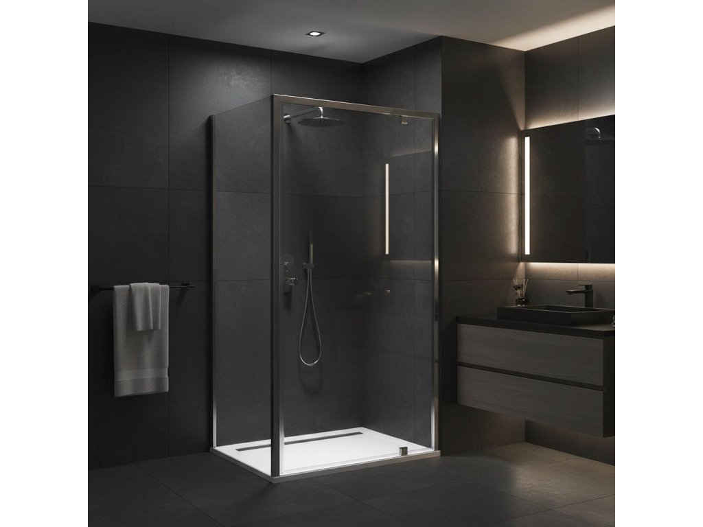 Rohová sprchová kabína Primo Swing prináša moderný vzhľad a praktické používanie. Výklopný systém dverí umožňuje pohodlné a plynulé otváranie aj v menších kúpeľniach. Konštrukcia je založená na tvrdenom skle, ktoré zaručuje zvýšenú bezpečnosť a odolnosť. Stabilitu a dlhú životnosť zabezpečujú hliníkové profily, odolné voči vlhkosti a korózii. Minimalistický dizajn podčiarkuje moderný štýl, a presné pánty umožňujú tiché a ľahké otváranie dverí.Dodatočné parametre