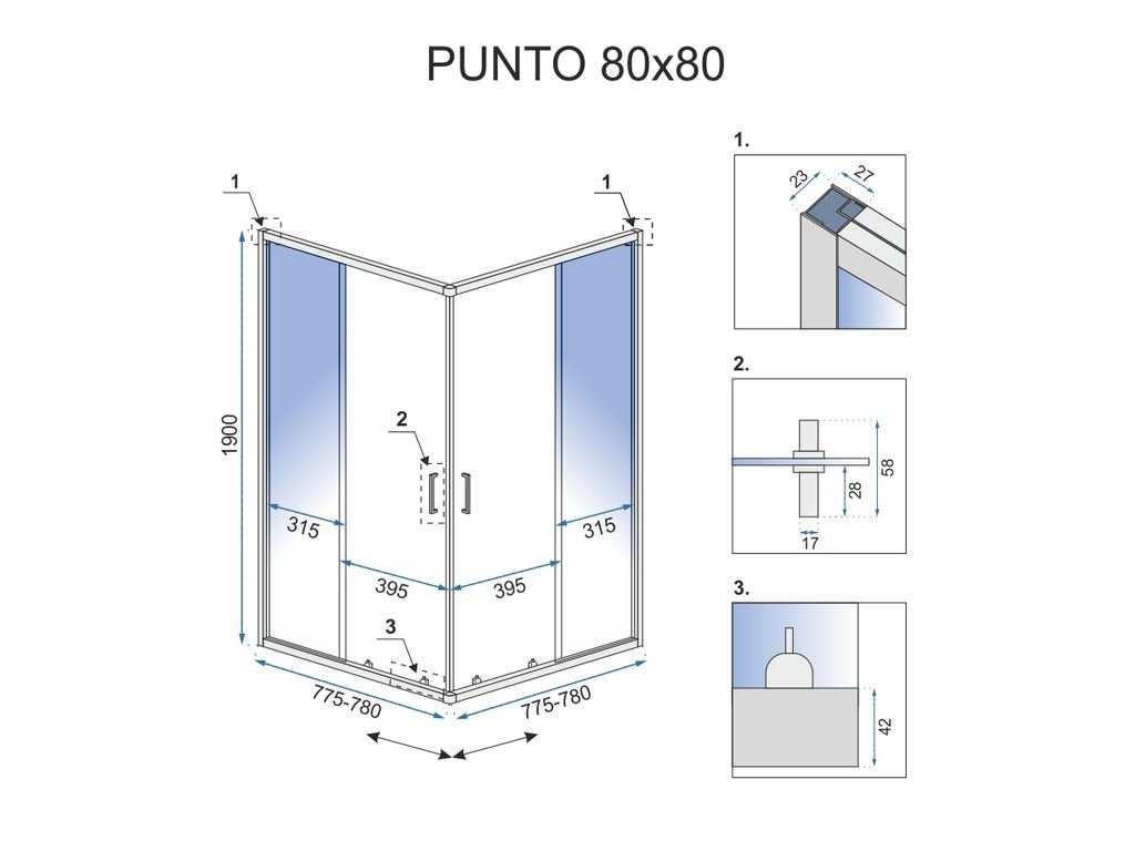 Funkčnosť a estetika sú slová, ktoré najlepšie vystihujú náš sprchový kút Punto.Tento kút určite veľmi dobre zapadne medzi ostatné dizajnové prvky kúpeľne. Pozývame vás pozrieť si aj ďalšie ponuky v našom obchode!Dodatočné parametre