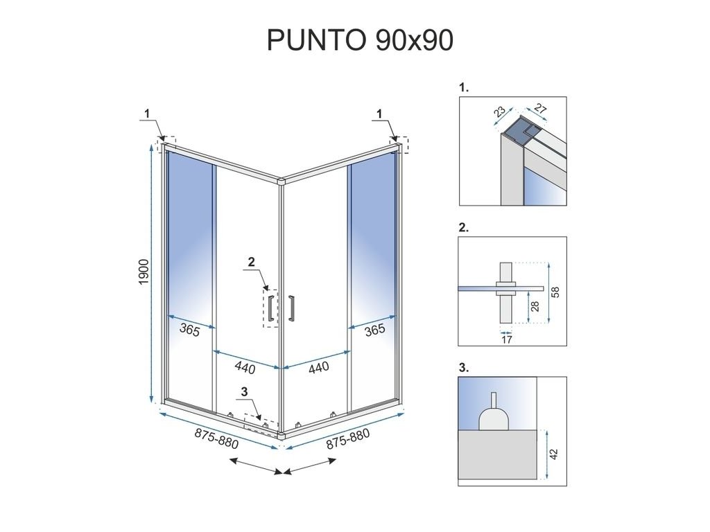 Funkčnosť a estetika sú slová, ktoré najlepšie vystihujú náš sprchový kút Punto.Tento kút určite veľmi dobre zapadne medzi ostatné dizajnové prvky kúpeľne. Pozývame vás pozrieť si aj ďalšie ponuky v našom obchode!Dodatočné parametre