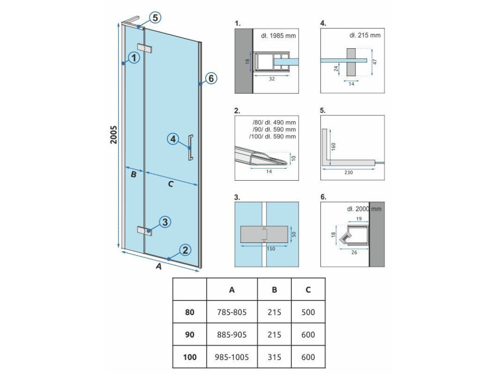 | Výška sprchových dverí: | 200, 205 |
