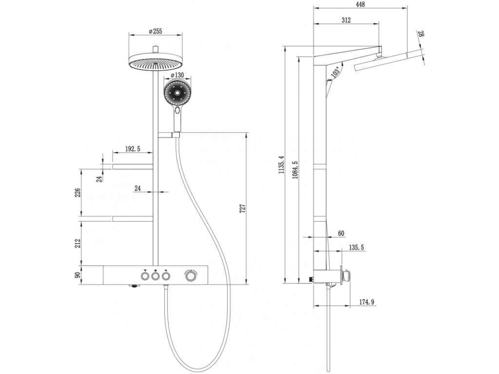 \nVeľkosť dažďovej sprchy: ø255 mm