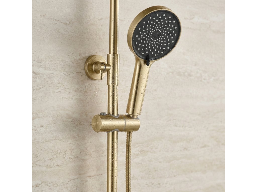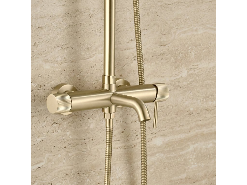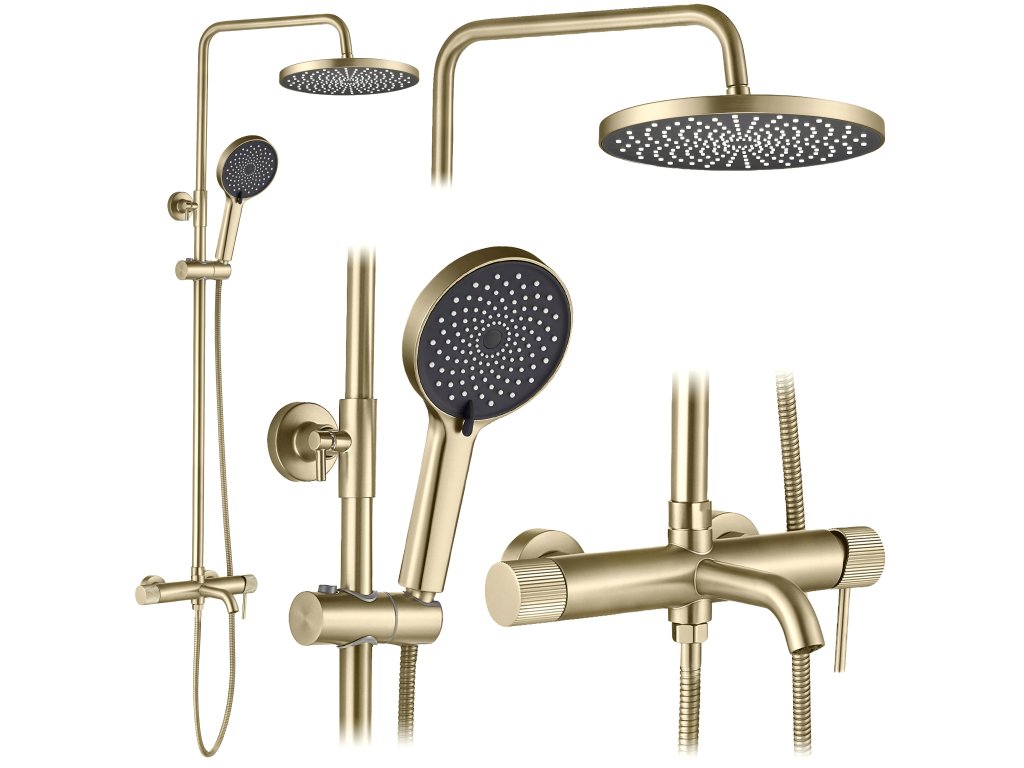Sprchový set Rea Lungo Stripe v prevedení Kartáčované zlato je spojením moderného dizajnu s vysokou funkčnosťou. Charakteristickým prvkom série sú jemné drážkované detaily, ktoré dodávajú armatúre jedinečný, šperkársky štýl. Vďaka použitiu pokročilej technológie PVD povlakovania sa set vyznačuje mimoriadnou trvanlivosťou a odolnosťou voči poškodeniu. Povrch Kartáčované zlato – elegantný matný povrch, ktorý účinne maskuje škvrny od vody a odtlačky prstov, čo uľahčuje každodenné čistenie. Štruktúra Stripe – unikátne drážkovanie na prvkoch setu zdôrazňuje moderný charakter kúpeľne a zlepšuje úchop. Technológia PVD – zaručuje viacročnú stálosť farieb a vysokú odolnosť voči poškriabaniu a korózii. Kompletný sprchový systém – set obsahuje veľkú dažďovú sprchu, ergonomickú ručnú sprchu a nástennú batériu, čo zaisťuje plný komfort používania. Vysokokvalitné materiály – mosadzné telo zaisťuje bezporuchovosť po celé roky. Set Rea Lungo Stripe je ideálnym riešením pre ľudí hľadajúcich odolnú a efektnú armatúru, ktorá sa stane výrazným dekoratívnym prvkom v každej modernej kúpeľni.Dodatočné parametre