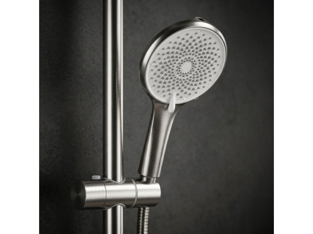 Hľadáte funkčné a štýlové riešenie do svojej sprchovej zóny? Objavte sprchový set na stenu Rea Rivo v modernom vyhotovení Brúsený nikel. Je to ideálna voľba pre tých, ktorí oceňujú minimalistický dizajn a premyslené funkcie. Pevný mosadzný korpus batérie a nastaviteľná výška dažďovej sprchy zaisťujú pohodlné používanie.Farba Brúsený nikel – estetická povrchová úprava (v technológii PVD), ktorá sa dokonale hodí do moderných interiérov.Korpus batérie z mosadze – zaručuje pevnosť konštrukcie a odolnosť pri každodennom používaní.Multifunkčná ručná sprcha – ponúka nielen štandardné režimy, ale aj inovatívny prúd typu „bidetka“ umiestnený v hornej časti sprchy, čo výrazne zvyšuje funkčnosť kúpeľne.Keramická kartuša – presný mechanizmus umožňujúci plynulú a pohodlnú reguláciu teploty a sily prúdu vody.Systém Anti-Calc – trysky v ručnej sprche aj dažďovej sprche uľahčujú odstraňovanie vodného kameňa, čo pomáha udržiavať set v čistote.Montáž na stenu – štandardný rozstup pripojenia 150 mm umožňuje jednoduchú a rýchlu inštaláciu.Sprchový set Rea Rivo je výbornou voľbou pre ľudí, ktorí si cenia moderný dizajn a nadpriemernú funkčnosť. Tento set REA zvyšuje komfort každodenného sprchovania a ponúka spoľahlivosť aj štýlový vzhľad vo vašej kúpeľni.Dodatočné parametre