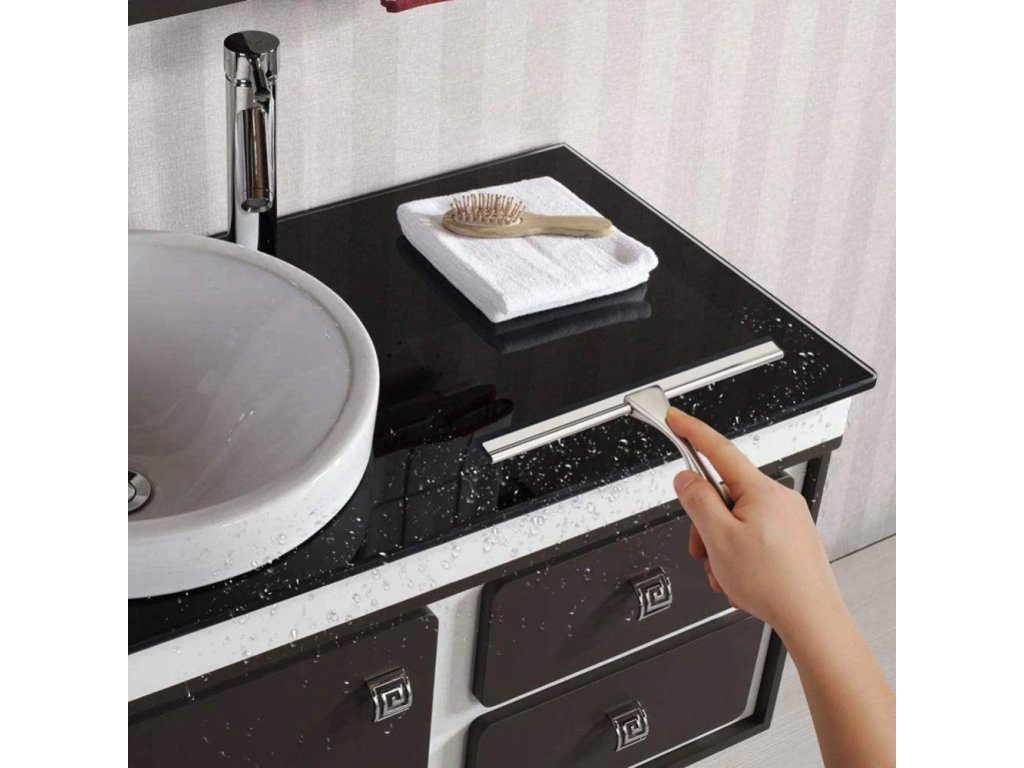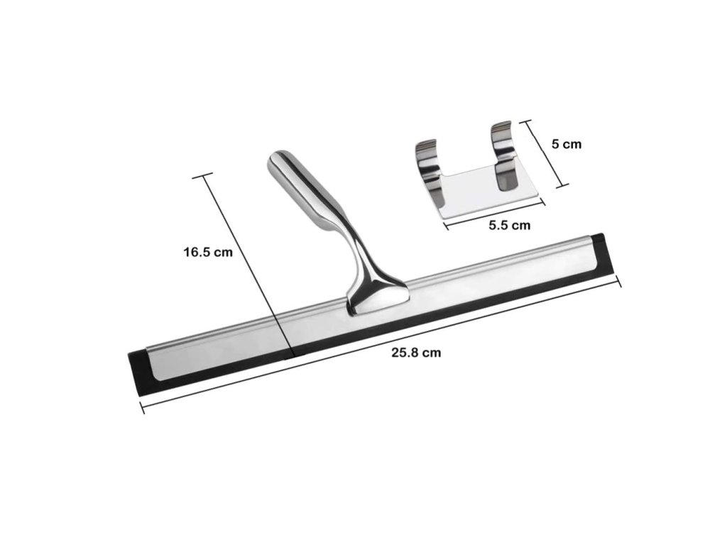 Moderná a elegantná kúpeľná stierka so závesným systémom je skvelým riešením na udržiavanie čistoty vo Vašej kúpeľni ľahko a rýchlo. Vďaka tejto stierke môžete odstrániť prebytočnú vodu z povrchov bez vzniku nežiaducich šmúh. Súprava obsahuje závesný systém (hák), ktorý je určený na montáž na stenu a to bez vŕtania.Dodatočné parametre