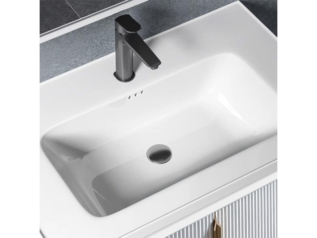 Moderná kúpeľňová zostava Astor - skrinka s umývadlom + skrinka so zrkadlom Kúpeľňová zostava nábytku Astor je návrh, ktorý spája štýlový vzhľad s každodennou funkčnosťou. Dokonale sa osvedčí v moderných kúpeľniach, kde záleží na pohodlí a premyslenej organizácii priestoru. Súprava pozostávajúca z nástennej skrinky pod umývadlo a skrinky so zrkadlom je hotovým riešením, ktoré umožňuje vytvoriť praktický a ucelený priestor pod umývadlo bez potreby hľadania samostatných prvkov. h4. Minimalistický tvar, ktorý sa hodí kamkoľvek Model Astor sa vyznačuje výraznými vertikálne ryhovanými čielkami, ktoré celku dodávajú moderný a dynamický vzhľad. Na výber sú dva farebné varianty - grafitový a biely, oba doplnené elegantnou úchytkou v strednej časti skrinky. Vďaka tomu súprava dobre zapadne do módnych aranžmánov, či už v tlmenej, alebo výraznejšej verzii. h4. Praktické riešenia na každodenné použitie Zrkadlová skrinka bola vybavená otvorenými policami, ktoré poskytujú rýchly prístup ku každodennej kozmetike. Spodná skrinka pojme väčšie predmety, ako sú čistiace prostriedky alebo kozmetika vo fľašiach. Celá jednotka je pripevnená k stene, čo nielen opticky zväčšuje priestor, ale aj uľahčuje udržiavanie čistoty v okolí nábytku. h4. Umývadlo zodpovedajúce celku Súčasťou súpravy je keramické umývadlo s otvorom na vodovodnú batériu, veľkosťou zodpovedajúce základnej jednotke. Jeho univerzálny tvar dobre ladí so zvyškom súpravy, čím vytvára jednotný a estetický celok. Astor je súprava, ktorá ponúka jednotný vzhľad a praktické riešenia - je pripravená na inštaláciu a okamžité použitie v každej modernej kúpeľni.Dodatočné parametre