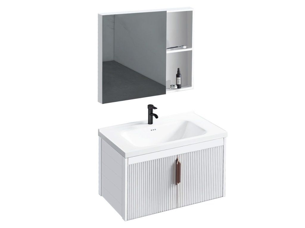 Kúpeľňová zostava – skrinka s umývadlom a zrkadlom Funkčný a moderný kúpeľňový nábytok predstavuje hotové riešenie na vytvorenie praktickej umývadlovej zóny. Súčasťou zostavy je závesná skrinka s keramickým umývadlom a skrinka so zrkadlom a bočnými poličkami, ktoré uľahčujú uskladnenie každodennej kozmetiky. Dostupné farebné varianty a elegantná úchytka umožňujú prispôsobenie rôznym štýlom kúpeľní – od minimalistických po moderné. Nástenná montáž zabezpečuje vizuálnu ľahkosť a uľahčuje udržiavanie čistoty. Ide o praktickú voľbu, ktorá spája estetiku s každodenným pohodlím – bez nutnosti dokupovať jednotlivé prvky.Dodatočné parametre