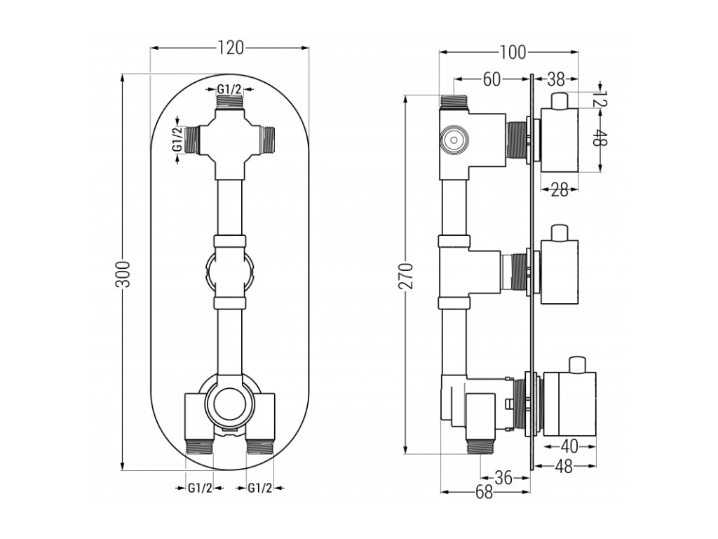 \nPripojenie: 2x vstup G 1/2" a 3x výstup G 1/2"