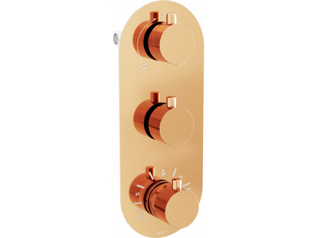 Termostatická vaňová a sprchová batéria Mexen Kai, 3 výstupy, ružové zlato - 77603-60