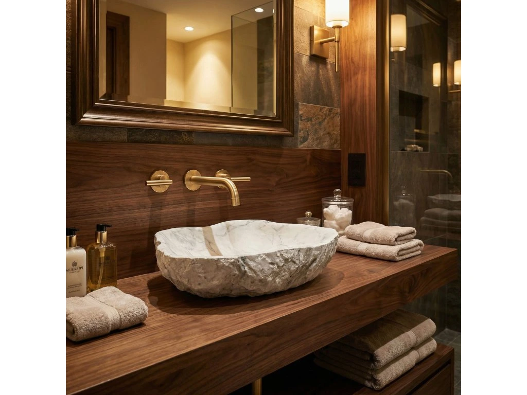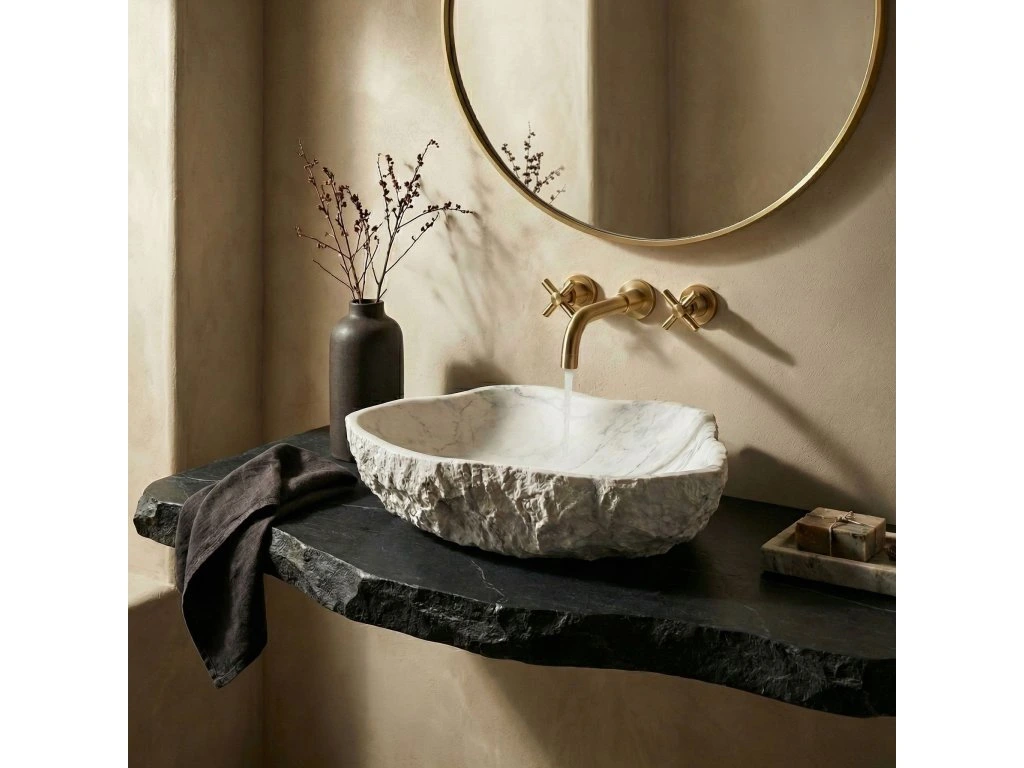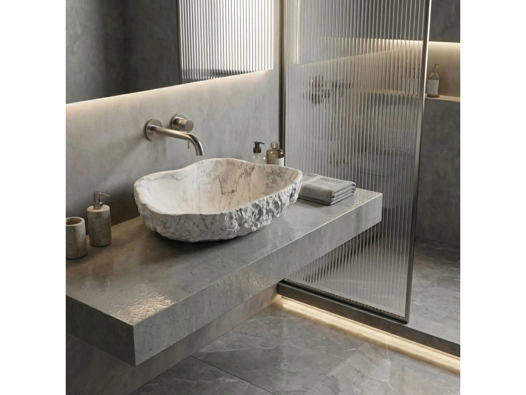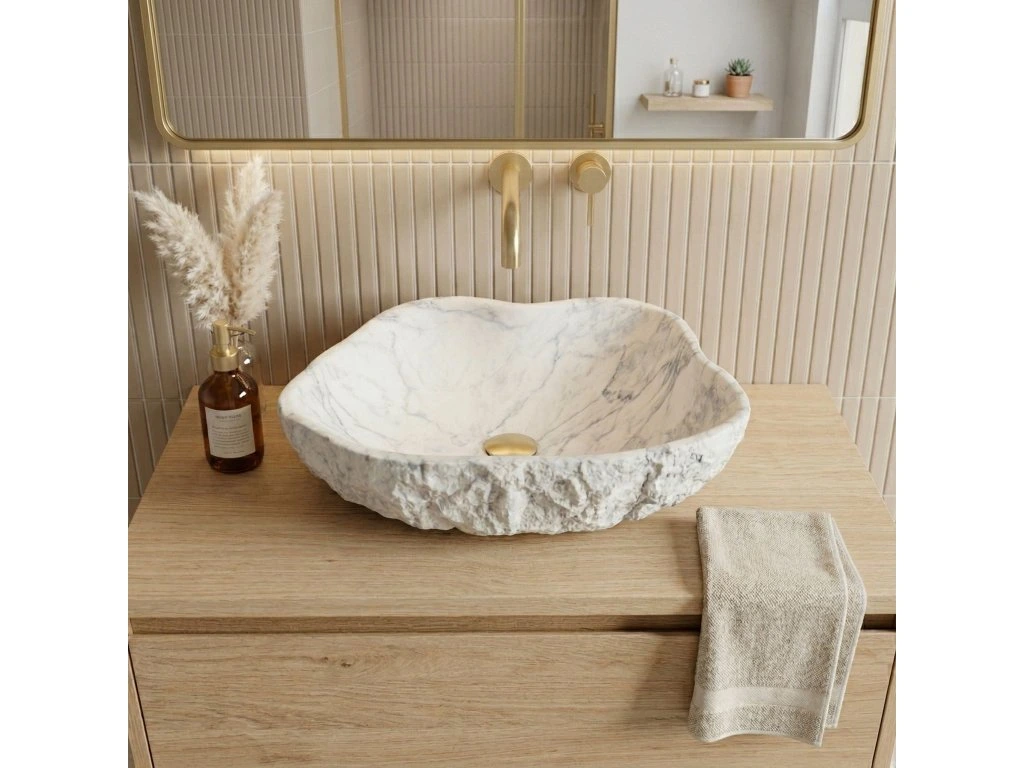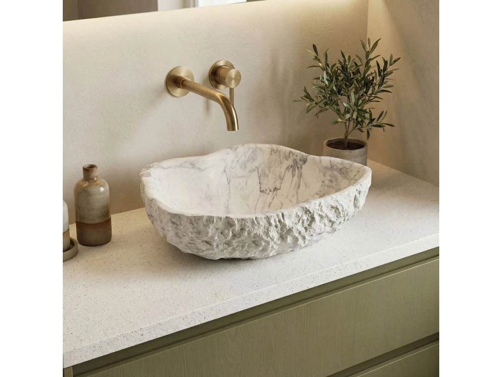 Vytvorte si vo svojej kúpeľni jedinečnú zónu relaxu s umývadlom na dosku Rea Isla Marlo. Tento netradičný model púta pozornosť nepravidelnou, organickou formou a povrchom imitujúcim mramor. Je vyrobený z kompozitného umelého kameňa Artificial Stone a spája surovú estetiku s modernou odolnosťou.Štruktúra kameňa – vonkajší povrch misy má výraznú, drsnú textúru pripomínajúcu neopracovanú skalu, čo jej dodáva autentický, remeselný charakter.Materiál Artificial Stone – použitý kompozit je mimoriadne pevný a odolný proti mechanickému poškodeniu, a zároveň je príjemnejší a teplejší na dotyk než prírodný kameň.Mramorový vzor – svetlý odtieň obohatený výrazným sivým žilkovaním imituje štruktúru prírodného mramoru a vnáša do interiéru eleganciu a prestíž.Hladké vnútro – v štýlovom kontraste k surovej vonkajšej štruktúre je vnútro umývadla dokonale hladké, čo zabezpečuje jednoduché čistenie a voľný odtok vody.Montáž na dosku – umývadlo je určené na umiestnenie na dosku alebo kúpeľňovú skrinku, vďaka čomu je jeho sochárska dvojštruktúrová forma naplno vystavená.Umývadlo Rea Isla Marlo je výbornou voľbou do kúpeľní v modernom alebo glamour štýle aj do interiérov inšpirovaných blízkosťou prírody. Spojenie organického tvaru s elegantným mramorovým motívom z neho robí mimoriadne efektný a praktický prvok vybavenia.Dodatočné parametre