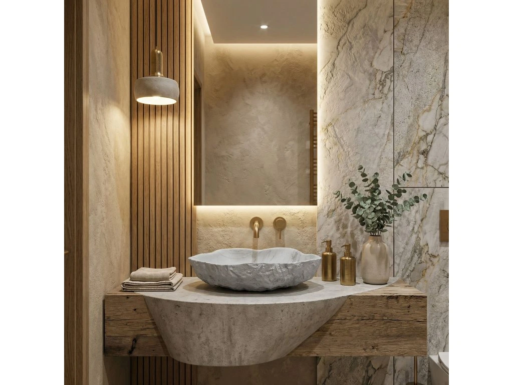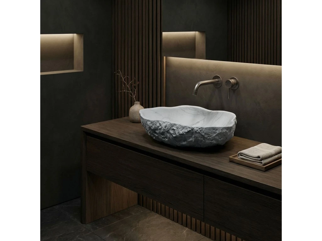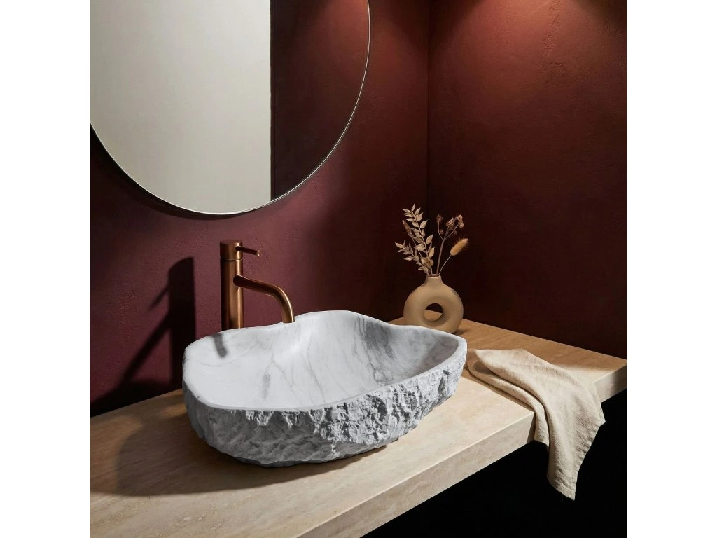 Vytvorte si vo svojej kúpeľni relaxačnú zónu s umývadlom na dosku Rea Isla Venice. Tento jedinečný model priťahuje pozornosť nepravidelným, organickým tvarom a povrchovou úpravou imitujúcou prírodný kameň. Vyrobené z kompozitného umelého kameňa Artificial Stone, spája v sebe surovú estetiku s modernou odolnosťou.Štruktúra kameňa – vonkajší povrch misy má výraznú, hrubú textúru pripomínajúcu neopracovanú skalu, čo jej dodáva autentický, remeselný charakter.Materiál Artificial Stone – použitý kompozit je mimoriadne pevný a odolný voči mechanickému poškodeniu, a zároveň príjemnejší a teplejší na dotyk než prírodný kameň.Elegantná farebnosť – sofistikovaný holubí sivý odtieň s prírodnými jemnými žilkami imituje štruktúru kameňa a vnáša do interiéru pokoj a harmóniu.Hladké vnútro – v kontraste k surovej vonkajšej textúre je vnútro umývadla dokonale hladké, čo zaisťuje ľahké čistenie a voľný odtok vody.Montáž na dosku – umývadlo je prispôsobené na postavenie na dosku alebo skrinku, vďaka čomu je jeho sochárska forma plne exponovaná.Umývadlo Rea Isla Venice je vynikajúcou voľbou pre kúpeľne v štýle boho, spa a modernom štýle. Spojenie organického tvaru s odolnosťou kompozitu z neho robí efektný a zároveň praktický prvok vybavenia, ktorý narúša geometrickú strohosť interiéru.Dodatočné parametre