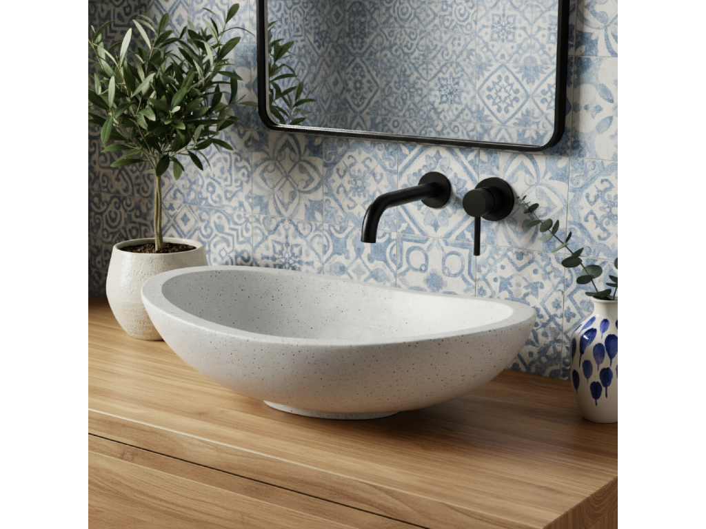 Chcete do kúpeľne priniesť štýlový, moderný prvok? Objavte nábytkové (na dosku) umývadlo Rea Leona z materiálu Artificial Stone. Tento pokročilý kompozit – zmes prírodného kameniva a živíc – spája vzhľad prírodného kameňa s výbornou odolnosťou. Elegantný oválny tvar a jedinečná škvrnitá štruktúra dodajú priestoru súčasný charakter.Materiál: Artificial Stone (kompozitný kameň) – špeciálna zmes pre vysokú pevnosť a trvácnosť.Vysoká odolnosť – výrazne odolnejšie voči škrabancom, nárazom a škvrnám než tradičná keramika.Hygienický povrch – neporézny materiál neabsorbuje nečistoty ani vlhkosť a obmedzuje baktérie.Vzhľad prírodného kameňa – jedinečná „škvrnitá“ textúra do moderných interiérov.Montáž na dosku – určené na inštaláciu na dosku alebo skrinku, s veľkou voľnosťou pri návrhu.Minimalistický dizajn – bez otvoru na batériu a bez prepadového otvoru; pre nástenné alebo vysoké stojanové batérie.Umývadlo Rea Leona prináša originálny dizajn, jednoduchú údržbu a vysokú odolnosť pri každodennom používaní.Dodatočné parametre