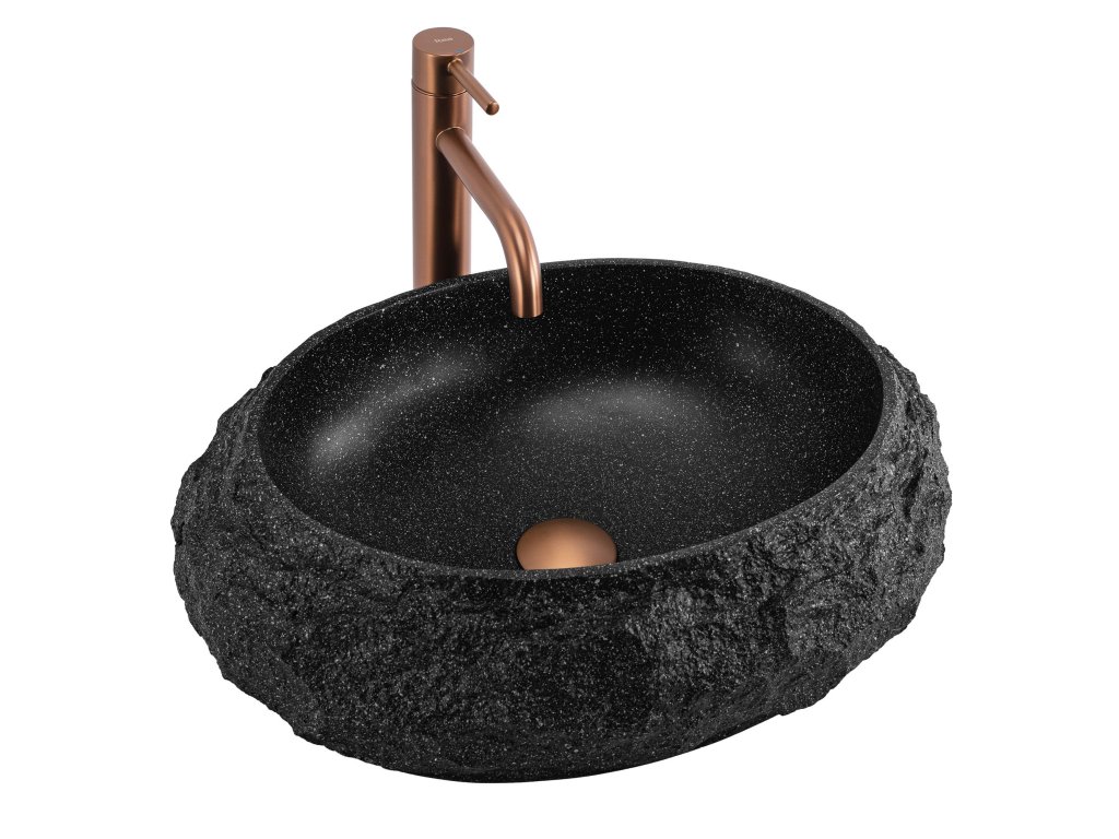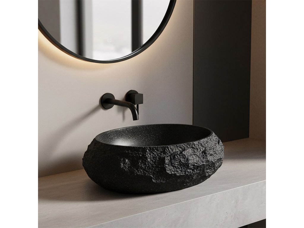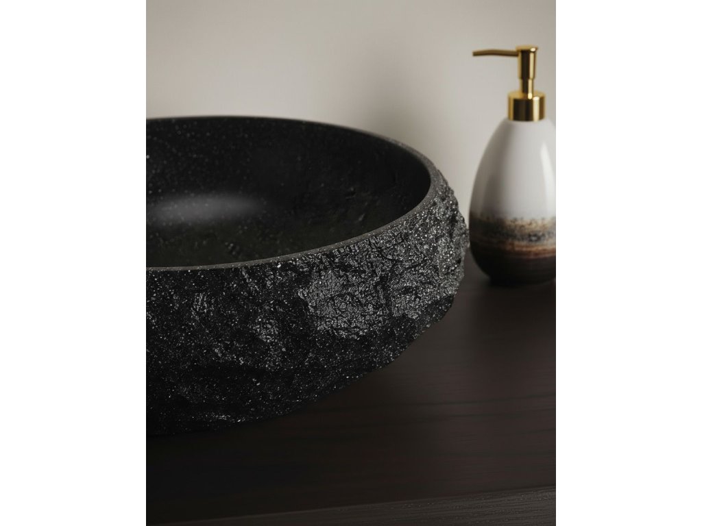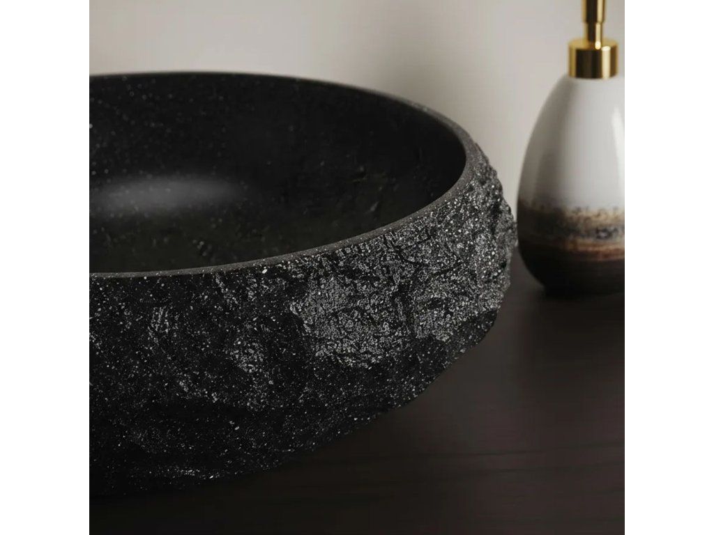 Nábytkové umývadlo Mika je riešením pre tých, ktorí chcú vo svojej kúpeľni spojiť eleganciu s modernosťou. Jeho povrch očarí hlbokou kamennou štruktúrou, ktorá dodáva interiéru jedinečný charakter. Je vyrobené z inovatívneho materiálu Artificial Stone (umelý kompozitný kameň), ktorý spája estetiku prírodného kameňa s odolnosťou a funkčnosťou moderných riešení. Vyniká odolnosťou voči mechanickému poškodeniu, vysokým teplotám a vlhkosti. Hladký vnútorný povrch misy zaručuje jednoduchú údržbu, zatiaľ čo surová kamenná textúra zvonka dodáva interiéru charakter a jedinečný pôvab. Je to voľba pre tých, ktorí hľadajú elegantný, dizajnový prvok kúpeľne, ktorý je rovnako praktický ako efektný.Dodatočné parametre