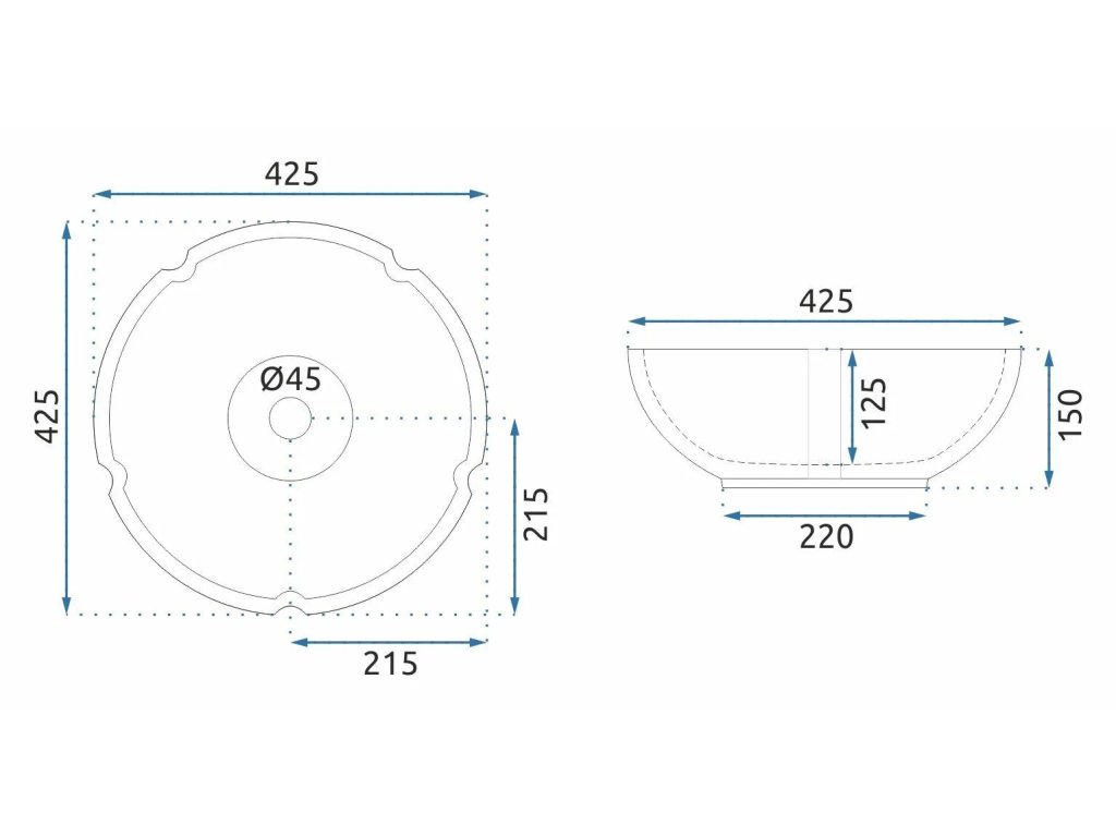 Predstavujeme Vám nové moderné umývadlo na dosku série Rea Vivien. Umývadlo netradičného kruhového tvaru je vyrobené z materiálov najvyššej kvality a jeho vlastnosti splnia všetky vaše požiadavky. Tento model ocení predovšetkým zákazník, hľadajúci nielen funkčné, ale hlavne estetické riešenie. Umývadlo je určené na montáž na dosku, ale je možné ho kombinovať aj so skrinkou.\n\nUmývadlo v bielom lesklom prevedení s modrým kvetovým vzorom sa navyše vďaka špeciálnej fáze výroby ľahko čistí a je veľmi odolné.Dodatočné parametre