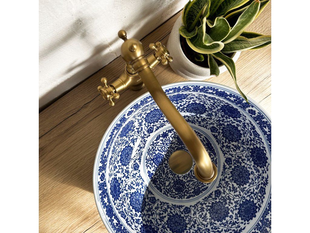 Predstavujeme Vám nové moderné umývadlo na dosku série Rea Vivien. Umývadlo netradičného kruhového tvaru je vyrobené z materiálov najvyššej kvality a jeho vlastnosti splnia všetky vaše požiadavky. Tento model ocení predovšetkým zákazník, hľadajúci nielen funkčné, ale hlavne estetické riešenie. Umývadlo je určené na montáž na dosku, ale je možné ho kombinovať aj so skrinkou.\n\nUmývadlo v bielom lesklom prevedení s modrým kvetovým vzorom sa navyše vďaka špeciálnej fáze výroby ľahko čistí a je veľmi odolné.Dodatočné parametre