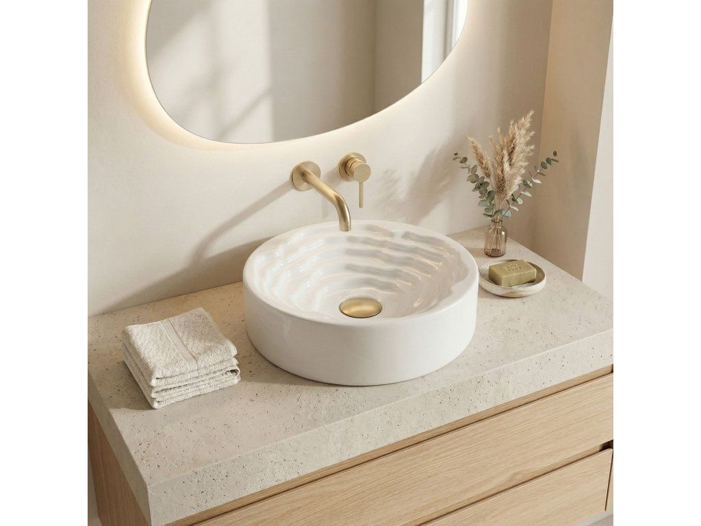 Objavte nový rozmer dizajnu vo svojej kúpeľni s okrúhlym umývadlom na dosku Rea Calla. Tento keramický model spája minimalistickú vonkajšiu formu s prekvapivým umeleckým vnútrom misy a stáva sa skutočnou ozdobou každej kúpeľne.Unikátne vnútro misy – stred umývadla zaujme trojrozmernou kaskádovitou a stupňovitou štruktúrou s nepravidelnými líniami. Tento priestorový vlnitý vzor dodáva celému telesu výrazný sochársky charakter.Hladký vonkajší povrch – v elegantnom kontraste s bohato zdobeným vnútrom si vonkajšia časť misy zachováva dokonale hladký, klasický valcový tvar, čím do formy vnáša dávku harmónie a pokoja.Lesklá sanitárna keramika – výroba z najkvalitnejšej bielej keramiky zaručuje odolnosť voči poškriabaniu a zmene farby. Lesklá, snehobiela glazúra krásne odráža svetlo, čím ešte viac zdôrazňuje trojrozmernosť vnútorného tvarovania.Pohodlie pri používaní – napriek vyrezávanej štruktúre uľahčujú vhodne profilované, jemné línie vĺn a dokonale hladká glazúra odtok vody a zaisťujú, že údržba umývadla v čistote je rýchla a bezproblémová.Montáž na dosku – umývadlo je prispôsobené na inštaláciu na dosku alebo kúpeľňovú skrinku, vďaka čomu sa stáva centrálnym, pútavým bodom umývacej zóny.Keramické umývadlo Calla je ideálnou voľbou pre ľudí, ktorí hľadajú netradičné riešenia do interiérov v modernom, avantgardnom alebo glamour štýle.Dodatočné parametre