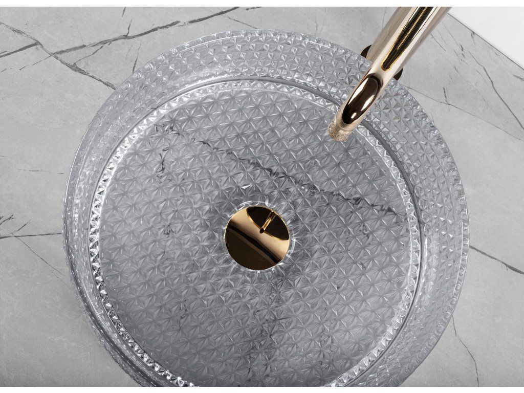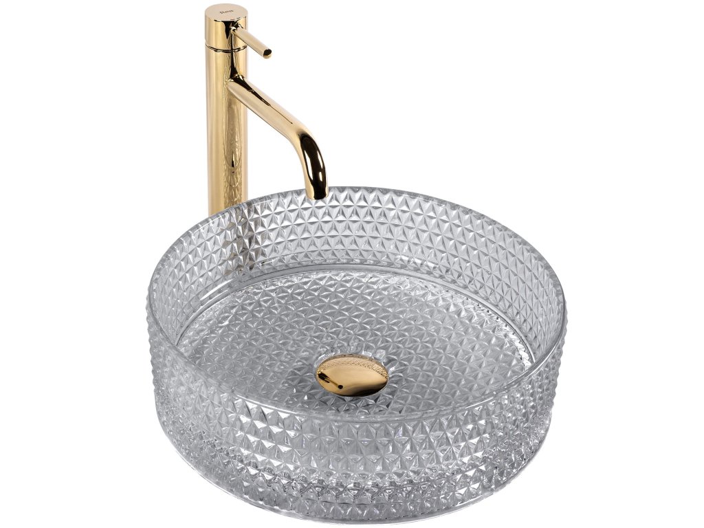 Moderné krištáľové umývadlo zo série Cristal sa bude vo vašej štýlovej kúpeľni skvele vynímať. Je vyrobené z vysoko kvalitného skla a je vhodný na montáž na pracovnú dosku alebo skrinku. Zaujímavý vizuálny efekt podčiarkuje svetlo odrážajúce sa v kryštáloch. Umývadlo s krištáľovým povrchom sa bezpochyby vyznačuje zaujímavým vzorom a dizajnom, čím dozaista zaujme každého hosťa.Dodatočné parametre