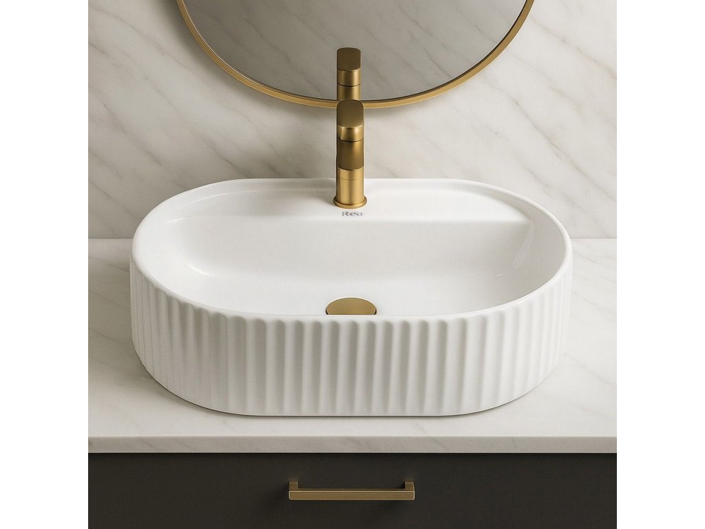 Predstavujeme Vám nové moderné umývadlo na dosku série Rea Cleo. Umývadlo obdĺžnikového tvaru je vyrobené z materiálov najvyššej kvality a jeho vlastnosti splnia všetky vaše požiadavky. Tento model ocení predovšetkým zákazník, hľadajúci nielen funkčné, ale aj estetické riešenie. Umývadlo je určené na montáž na dosku, ale je možné ho kombinovať aj so skrinkou. Umývadlo v bielom lesklom prevedení so vznešeným zlatým okrajom sa navyše vďaka špeciálnej fáze výroby ľahko čistí a je veľmi odolné.Dodatočné parametre