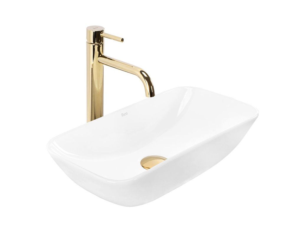 Predstavujeme Vám nové moderné umývadlo na dosku série Rea Cleo. Umývadlo obdĺžnikového tvaru je vyrobené z materiálov najvyššej kvality a jeho vlastnosti splnia všetky vaše požiadavky. Tento model ocení predovšetkým zákazník, hľadajúci nielen funkčné, ale aj estetické riešenie. Umývadlo je určené na montáž na dosku, ale je možné ho kombinovať aj so skrinkou. Umývadlo v bielom lesklom prevedení so vznešeným zlatým okrajom sa navyše vďaka špeciálnej fáze výroby ľahko čistí a je veľmi odolné.Dodatočné parametre
