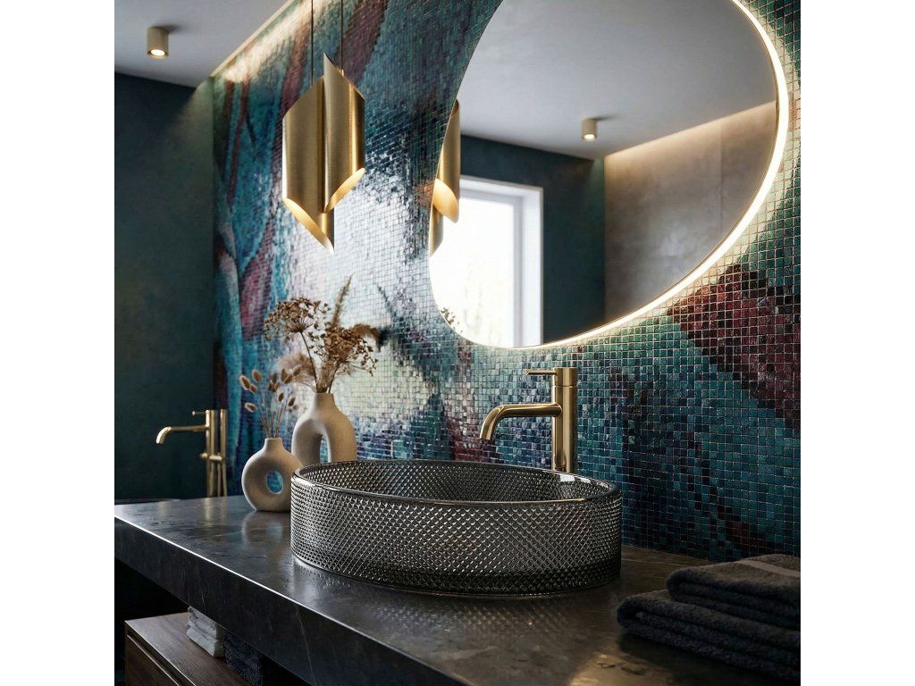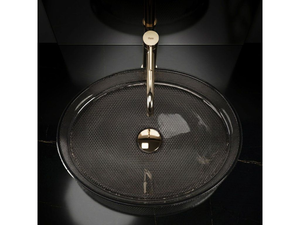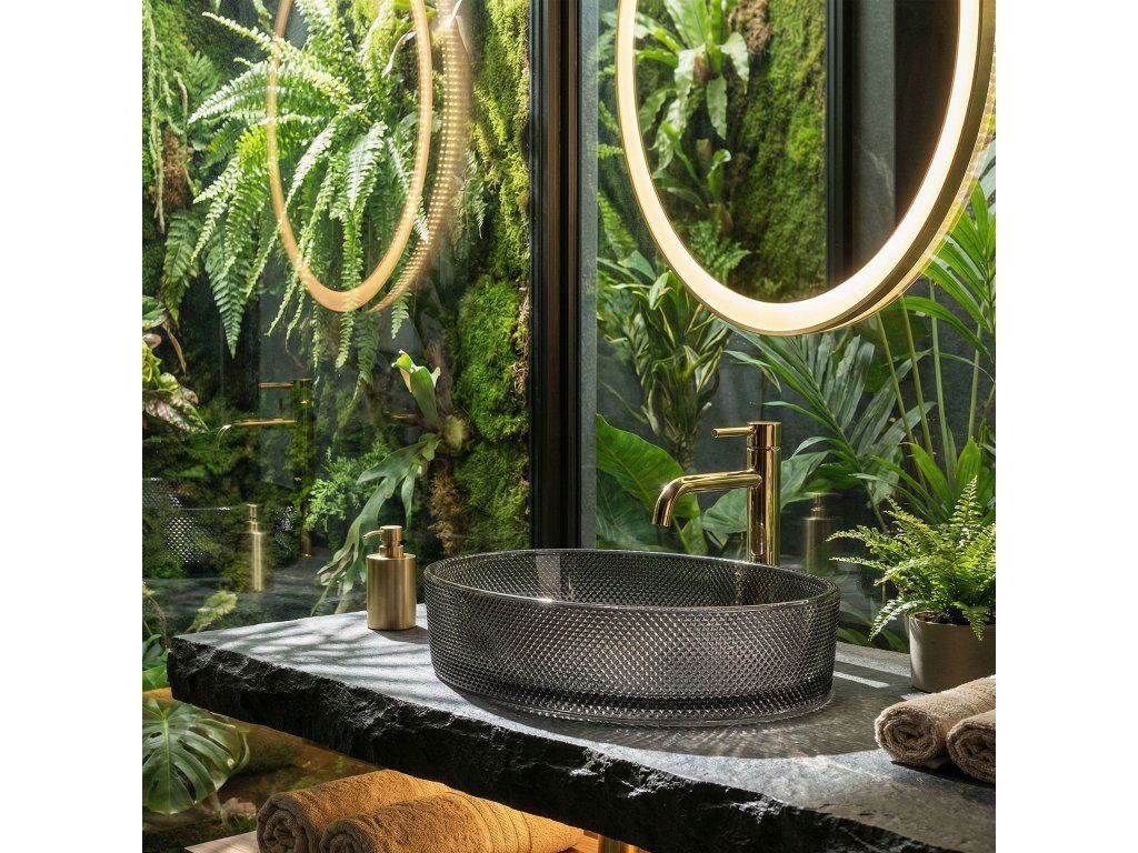 Hľadáte prvok, ktorý dodá vašej kúpeľni skutočne kráľovský lesk? Umývadlo na dosku Mirella, vyrobené z hrubého dekoratívneho skla, je ideálnou voľbou pre tých, ktorí si cenia exkluzivitu a dizajn inšpirovaný šperkárstvom. Jeho jedinečná štruktúra robí z produktu ústredný bod každej aranžácie, očarujúc hrou svetla a precíznosťou spracovania, ktorá mení charakter každého interiéru.Sklenený materiál – použitie skla zaručuje nielen úžasný vizuálny efekt, ale aj vysokú odolnosť proti poškriabaniu a každodennému používaniu.Šperkárska textúra povrchu – dekoratívne reliéfy na vonkajšej strane umývadla pripomínajú brúsené drahokamy a dodávajú celku luxusný a vycibrený charakter.Úchvatné svetelné odlesky – špeciálna štruktúra materiálu spôsobuje, že sa umývadlo pod vplyvom osvetlenia nádherne trbliece, čím do kúpeľne vnáša dynamiku a eleganciu.Ideálne do rôznych štýlov – oválna forma a bohaté zdobenie robia z tohto modelu perfektnú voľbu pre glamour interiéry, klasické art deco aj moderné luxury priestory.Hygienická hladkosť – hladké vyhotovenie vnútra misy zabraňuje usádzaniu nečistôt, čo umožňuje zachovať bezchybnú čistotu s minimálnou námahou. Výberom umývadla na dosku Mirella značky REA získavate záruku produktu, ktorý spája úžitkové vlastnosti s umeleckým remeslom. Pevná konštrukcia a dôraz na každý detail spôsobujú, že táto sklenená misa je nielen odolná, ale predovšetkým každý deň zaujme svojím vzhľadom. Je to ideálny spôsob, ako vniesť do umývadlovej zóny dotyk luxusu a výnimočnej estetiky.Dodatočné parametre