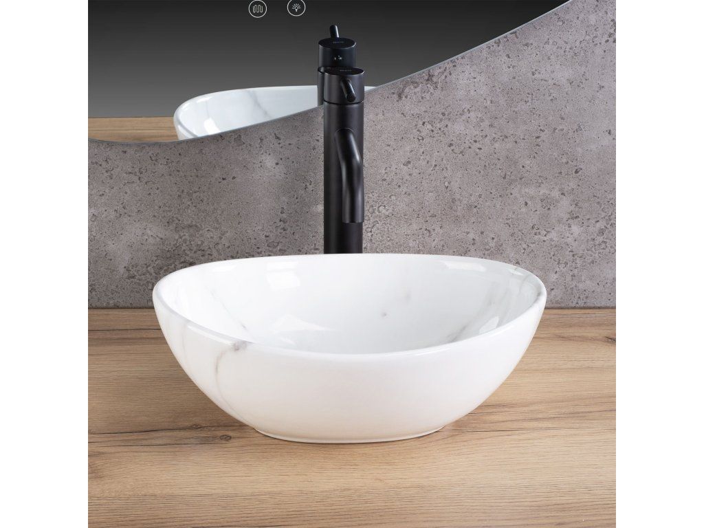 Predstavujeme Vám moderné nové umývadlo na dosku série Rea Sofia. Umývadlo netradičného tvaru je vyrobené z materiálov najvyššej kvality a jeho vlastnosti splnia všetky vaše požiadavky. Tento model ocení predovšetkým zákazník, hľadajúci funkčné, ale aj estetické riešenie. Umývadlo je určené na montáž na dosku, ale je možné ho kombinovať aj so skrinkou. Umývadlo v prevedení, ktoré napodobňuje svetlý kameň, sa navyše vďaka špeciálnej fáze výroby ľahko čistí, je veľmi odolné a má jedinečný vzor.Dodatočné parametre