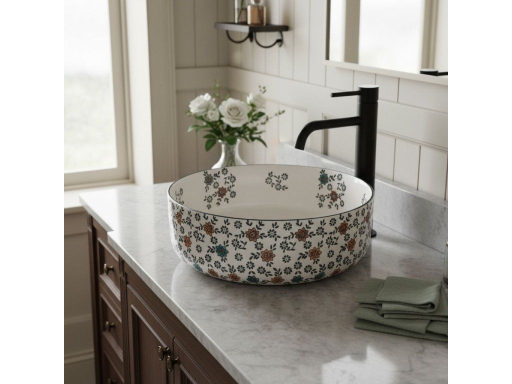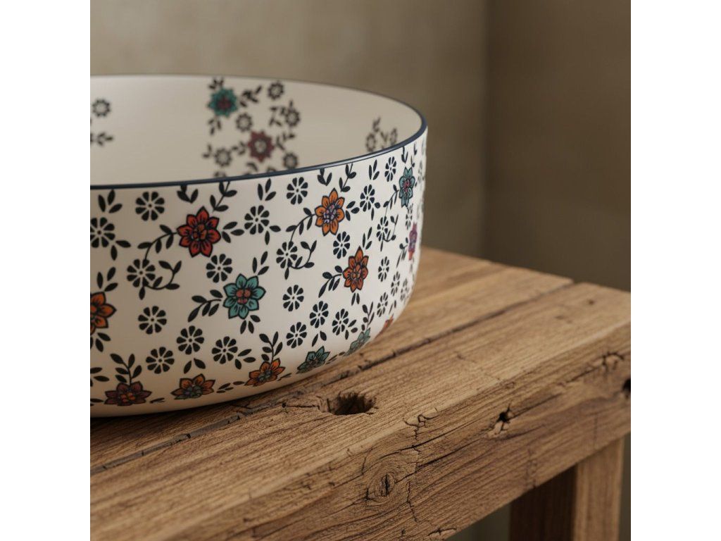 Hľadáte umývadlo, ktoré sa stane ozdobou vašej kúpeľne? Objavte umyvadlo na dosku Rea Stefania, ktoré spája matný povrch s originálnym viacfarebným kvetinovým vzorom. Vyrobené z kvalitnej sanitárnej keramiky, je ideálnou voľbou pre milovníkov rustikálneho dizajnu a precízneho spracovania.Matný povrch – moderný, elegantný a príjemný na dotyk.Jedinečný kvetinový vzor – viacfarebné dekorácie robia z umývadla výnimočný prvok interiéru.Kvalitná keramika – odolná voči poškodeniu a jednoduchá na údržbu.Nablatová montáž – umožňuje plne vyniknúť vzorovanému telu umývadla.Okrúhly tvar – nadčasový a praktický dizajn.Bez otvoru pre batériu – určené pre vysoké alebo nástenné batérie.Bez prepadu – čistý, minimalistický vzhľad.Umývadlo Rea Stefania je perfektnou voľbou pre tých, ktorí chcú do kúpeľne vniesť farbu a štýl.Dodatočné parametre