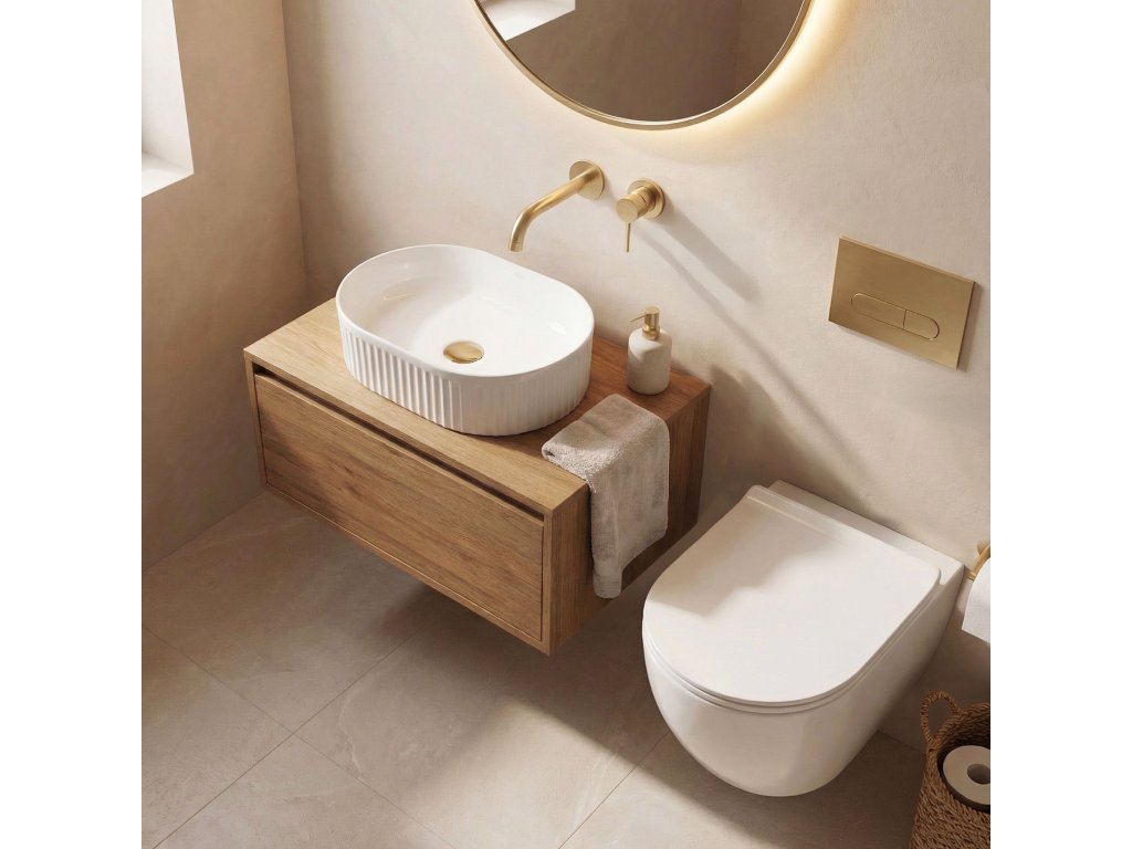 Stílusos és praktikus megoldást keres egy kisebb térbe? A Vanda 40 mini pultra szerelhető mosdó olyan választás, amely ötvözi a modern dizájnt a magas funkcionalitással. Átgondolt, kompakt méreteinek köszönhetően ez a modell ideális kis fürdőszobákba és vendégmosdókba, lehetővé téve a hely optimális kihasználását.Barázdált struktúra – a medence külső felületét függőleges bordázat díszíti. Ez a divatos, strukturált részlet modern és elegáns karaktert ad a mosdónak, gazdagítva a belső tér megjelenését.Kompakt méret – a csökkentett méretek biztosítják, hogy a mosdó ne uralja a teret, miközben teljes kényelmet nyújt a mindennapi kézmosás során.Fehér, fényes felület – a klasszikus fényes fehér megkönnyíti a kifogástalan tisztaság fenntartását. A sima belső felület megakadályozza a szennyeződések és a szappanmaradványok lerakódását.Tartós szaniterkerámia – a kiváló minőségű kerámiából készült mosdó tartósságot, valamint karcolásokkal és elszíneződésekkel szembeni ellenállást garantál, így a termék hosszú éveken át megőrzi esztétikus megjelenését.Pultra szerelhető kialakítás – a közvetlenül pultra vagy fürdőszobai szekrényre történő telepítés lehetővé teszi a mosdó dekoratív, bordázott oldalának teljes kiemelését.A Vanda 40 mini kerámia mosdó választásával biztos lehet benne, hogy még a legkisebb fürdőszoba is modern és ízléses lehet. Ez egy praktikus berendezési elem, amely bordázott textúrájának köszönhetően finom dísze lesz a mosdózónának.Dodatočné parametre