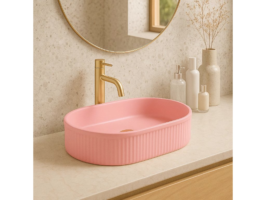 Umyvadlo na dosku v ružovej farbe Bubble Gum Matt je štýlové riešenie, ktoré dodá kúpeľni moderný charakter a zvýrazní jej jedinečný dizajn. Matný povrch v pastelovom odtieni ružovej pôsobí jemne elegantne a dokonale zapadá do súčasných trendov. Umyvadlo je vyrobené z kvalitnej sanitárnej keramiky, je odolné voči každodennému používaniu a ľahko sa čistí. Jeho ryhovaný vonkajší povrch vytvára efektnú dekoráciu, ktorá spája funkčnosť s originálnym dizajnom, čo z neho robí ideálnu voľbu pre moderné kúpeľne.Dodatočné parametre