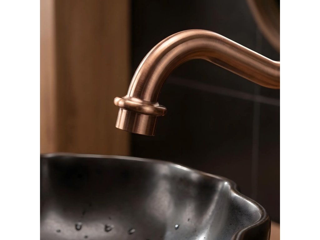 Vysoká umývadlová batéria Rea Bona je model navrhnutý pre umývadlá na dosku, v estetike Retro. Pevná konštrukcia a povrch v odtieni kartáčovanej medi z nej robia odolný a funkčný prvok kúpeľne.Určené pre umývadlá na dosku – vysoké telo zvyšuje komfort používania a hodí sa do rôznych aranžmánov.Retro / Vintage štýl – klasický dizajn s charakteristickými detailmi.Mosadzný korpus – materiál, ktorý zaručuje vysokú životnosť, stabilitu a odolnosť proti korózii.PVD povrch Kartáčovaná Meď – pokročilá technológia nanášania farby zabezpečuje odolnosť voči škrabancom a mechanickému poškodeniu.Otočná výtoková rúrka – praktické riešenie, ktoré zvyšuje dosah prúdu vody a uľahčuje každodenné činnosti.Batéria Rea Bona spája klasický dizajn s vysokou kvalitou spracovania. Mosadzný korpus a odolná PVD povrchová úprava zabezpečujú spoľahlivosť a otočná výtoková rúrka zvyšuje komfort používania.Dodatočné parametre