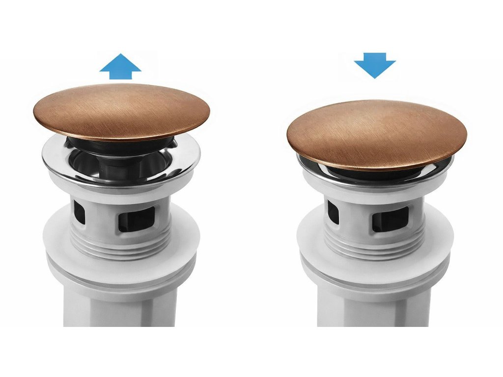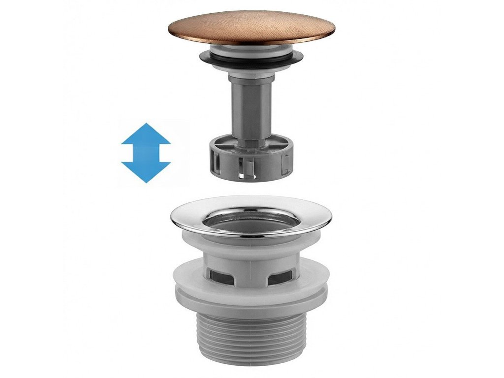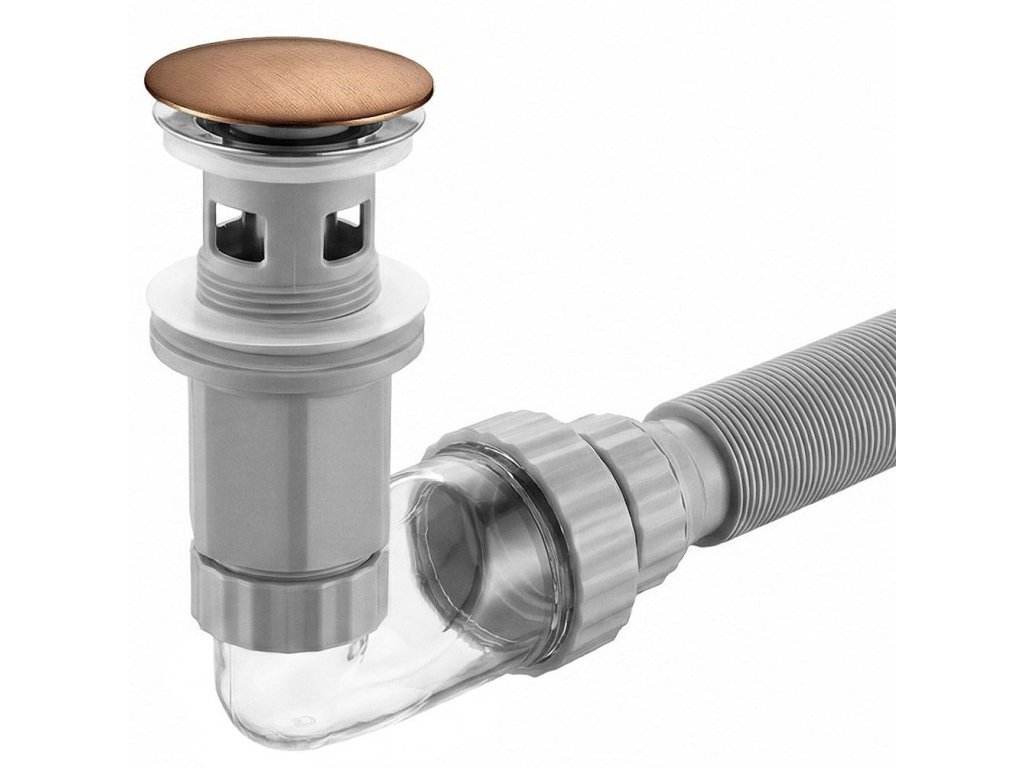 Umyvadlový sifon s univerzální výpustí click-clack REA Flow Brush Copper