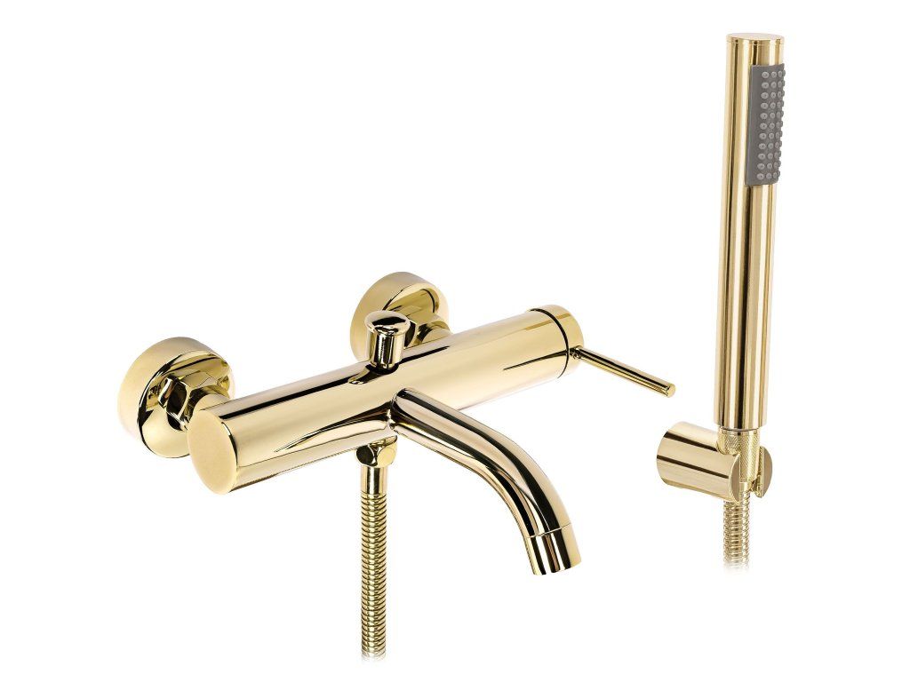 Funkčná a moderná vaňová batéria Spot v odtieni zlata je dokonalou kombináciou elegancie a praktickosti. Štýlovo dopĺňa kúpeľňu a zachováva bezchybný vzhľad i estetiku interiéru. Batéria je určená na nástennú montáž, vďaka čomu sa hodí do moderných aj klasických kúpeľní. Telo je vyrobené z vysoko kvalitnej mosadze, pokrytej trojitou vrstvou v odtieni zlata. Vďaka špeciálnej fáze výroby je batéria mimoriadne trvácna, odolná proti poškriabaniu a ľahko sa čistí, čo z nej robí spoľahlivý prvok kúpeľňového vybavenia.Dodatočné parametre