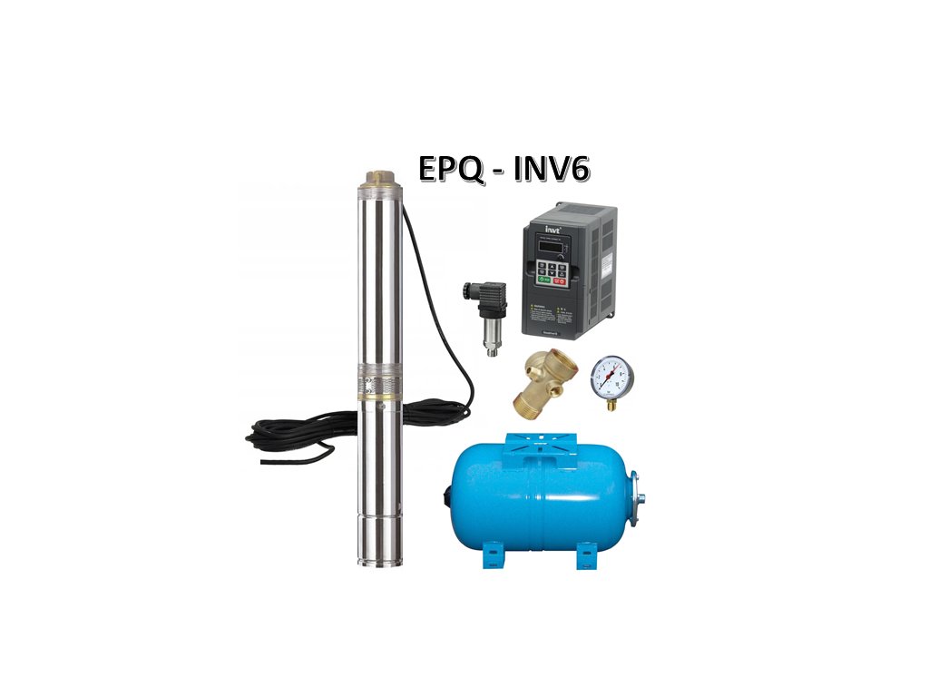 Samočinné domáce vodárne s invertorom\nset obsahuje:\n- ponorné čerpadlo s káblom, ( kábel 4x1 )\n- frekvenčný menič GD10\n- tlakový senzor s 5m káblom (dĺžka kábla podľa požiadavky až do 50m)\n- 5-cestnú tvarovku\n- manometer\n- nádrž ZILMET 24H\n\nIdeálne riešenie pri rôznych požiadavkach na množstvo vody počas dňa (dom, záhrada,bazén)\n\nPoužité čerpadlo: SETTE 4" QUATRO II 3/ 0,75 400V 20m\nHmax: 90m, Qmax: 97 l/min\nmotor :3x230V , 0,75kW, I = 3,0 A\nPriemer čerpadla 75mm\nMenič: GD10 - 7,5A\n\nHlavné výhody:\n- úspora elektrickej energie\n- konštantný tlak vody v systéme\n- pozvoľný štart a dobeh čerpadla (výrazne predlžuje životnosť čerpadla a studne)\n- menič je po pripojení vodičov pripravený na okamžité použitie.\nVideonávod pripojenia vodárne klik sem: Zapojenie vodárne\nPo dohode so servisom je možné ku každému setu dokúpiť sadu na automatický preplach a oplach filtra - teda takmer bezúdržbové čistenie filtra riadené frekvenčným meničom.